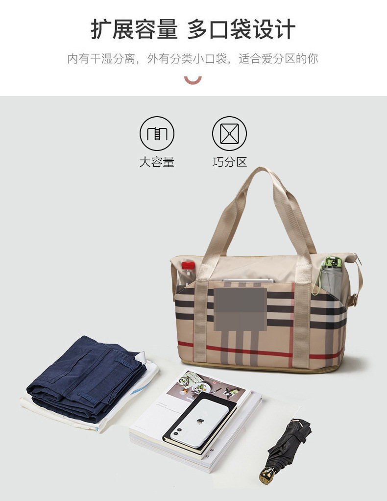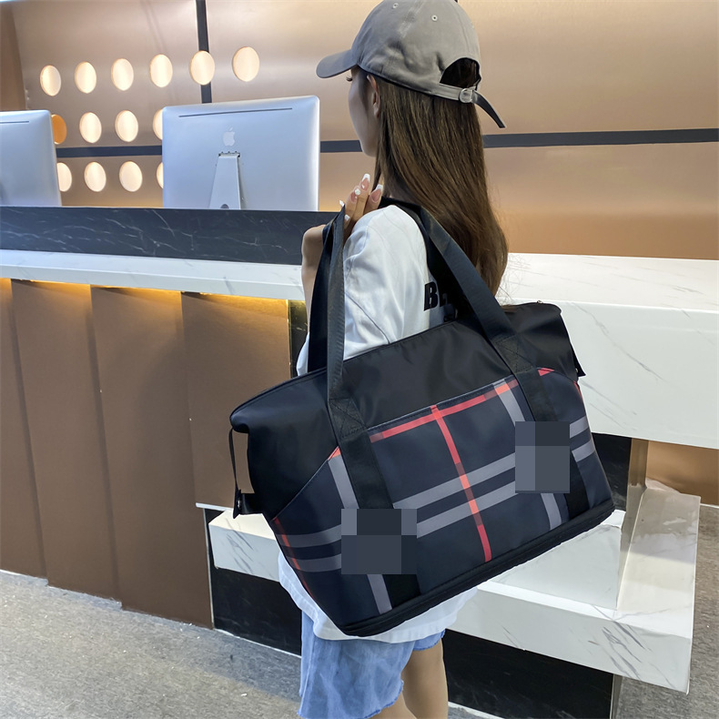 피트니스 가방, 신형 격자무늬 가방, 대용량 핸드백, 출퇴근 및 출장용, 야외용 건습 분리 여행 가방스토어 가기