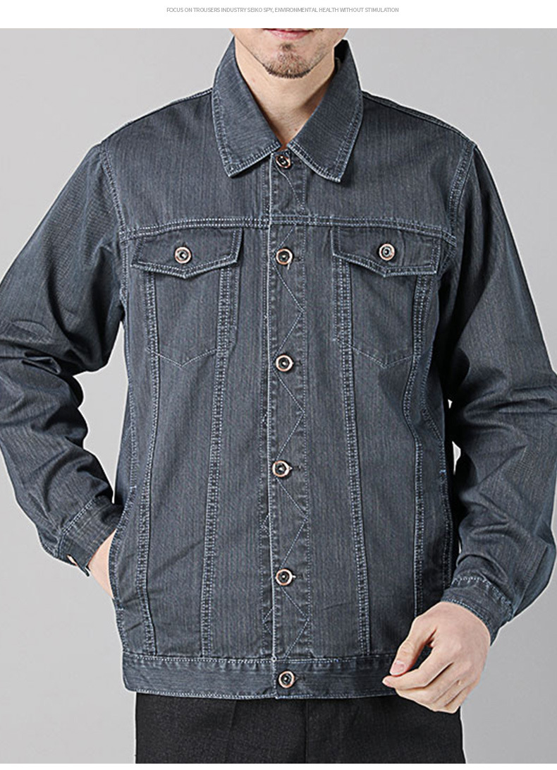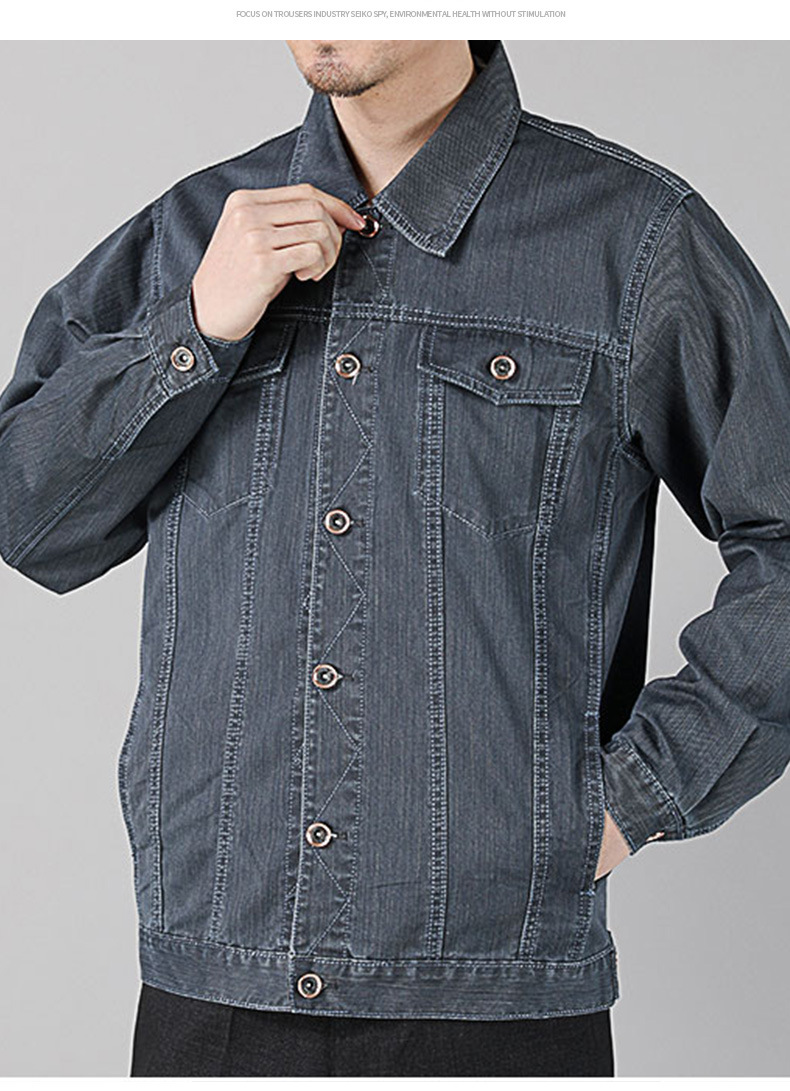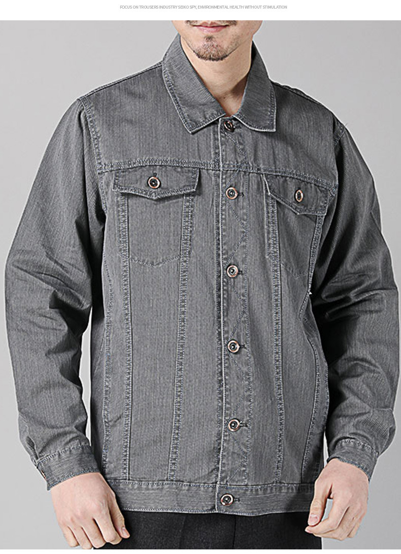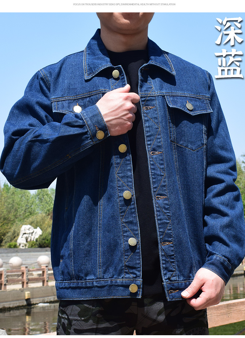 면 데님 재킷 남자의 봄과 가을 두꺼운 느슨한 플러스 사이즈 남자의 툴링 재킷 용접 작업 바지 남자의 탑스토어 가기