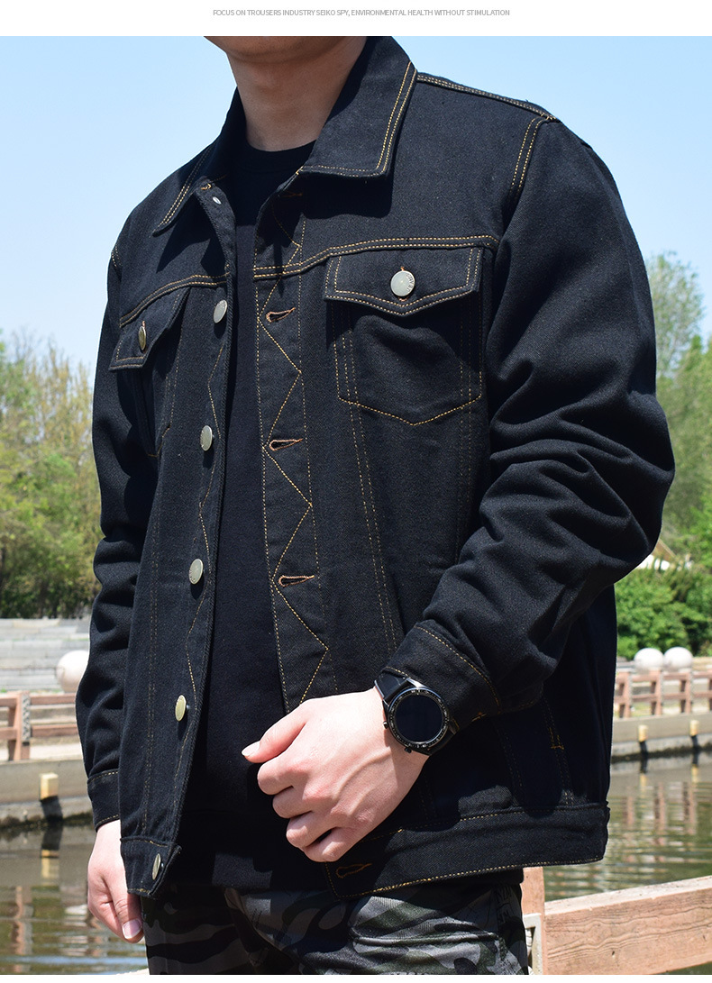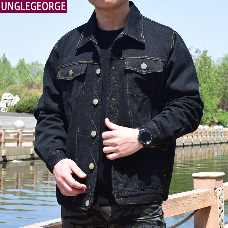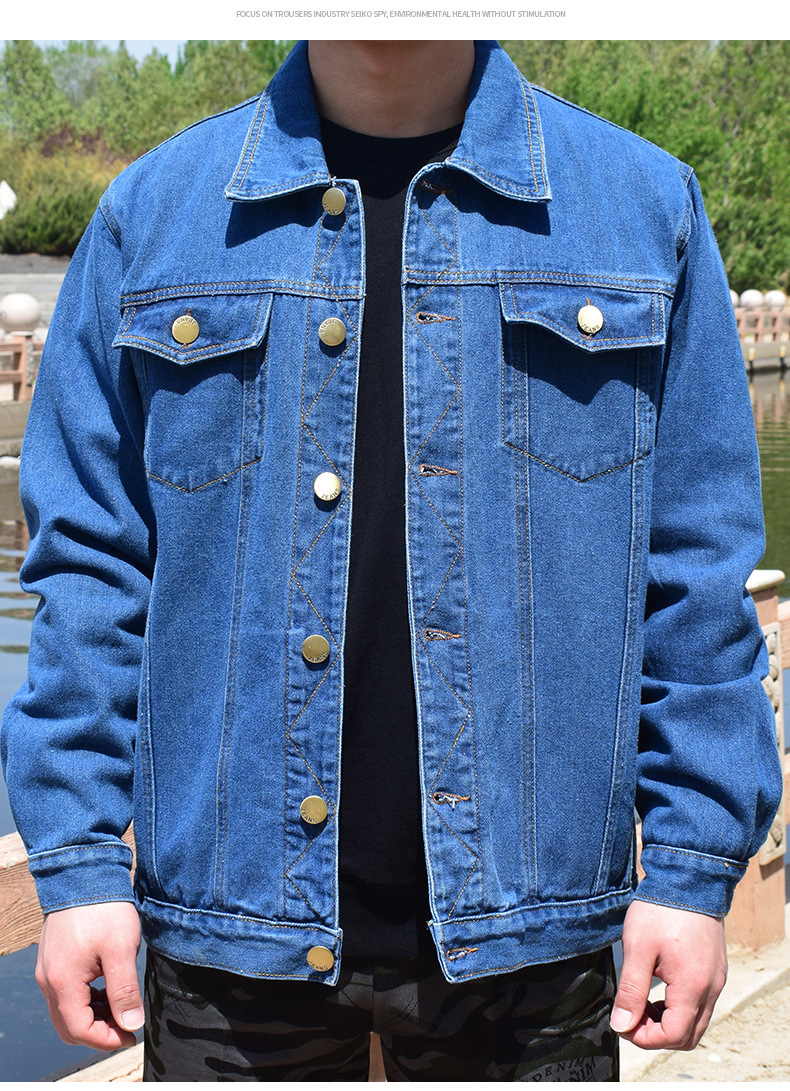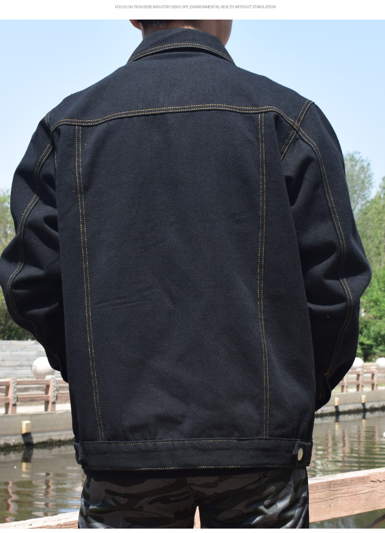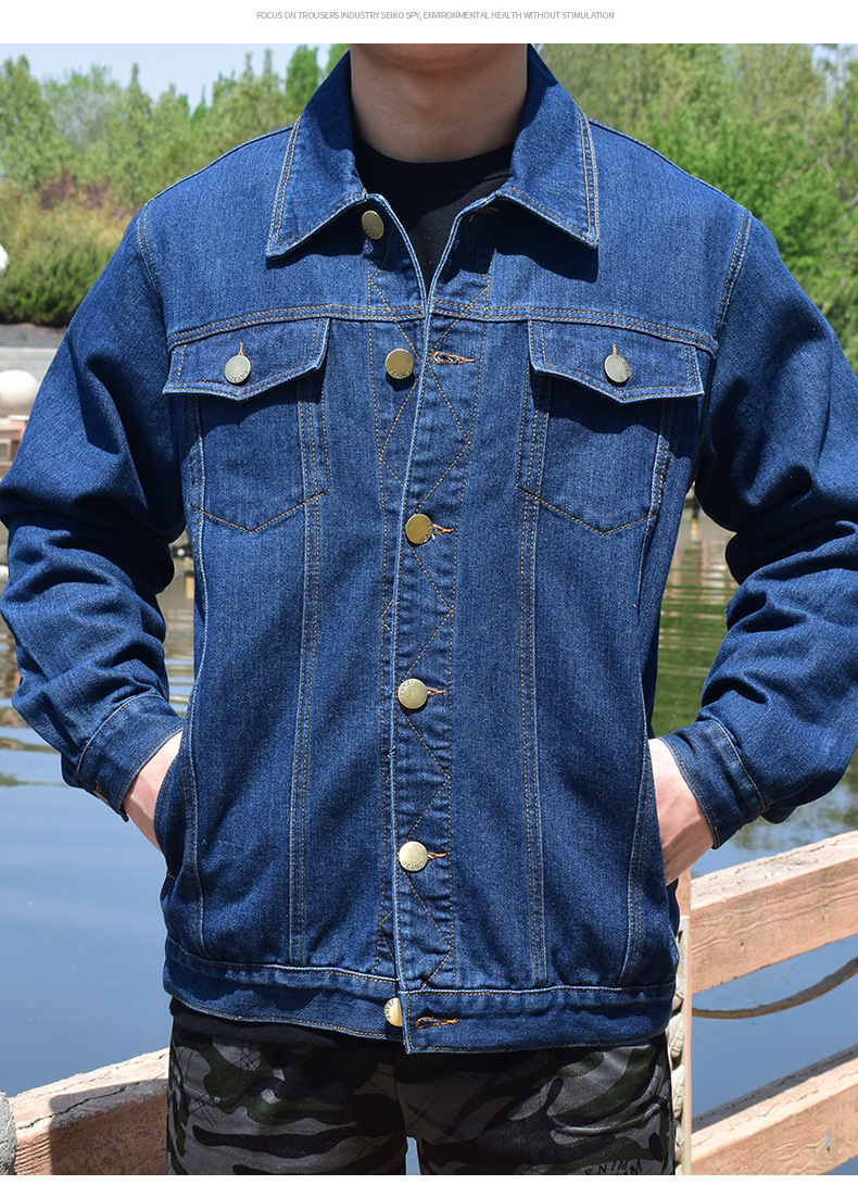 면 데님 재킷 남자의 봄과 가을 두꺼운 느슨한 플러스 사이즈 남자의 툴링 재킷 용접 작업 바지 남자의 탑스토어 가기