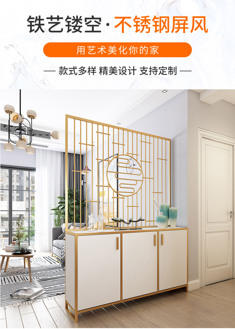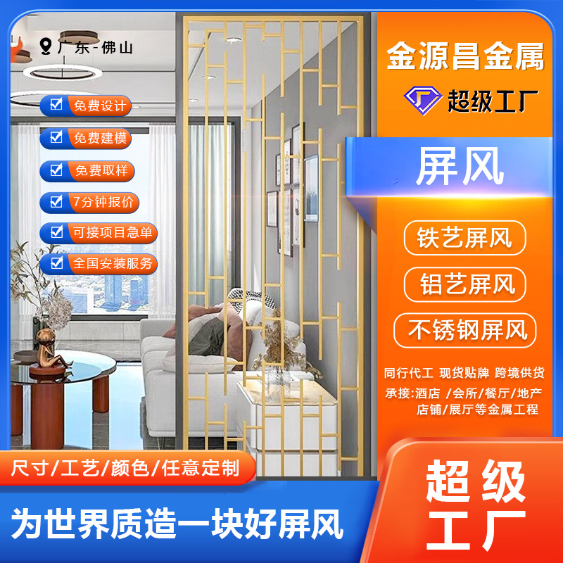 현대적인 중국 스타일의 거실과 침실용 스테인리스 스크린, 가정용 북유럽 스타일 현관문, 금속 칸막이 맞춤 제작스토어 가기