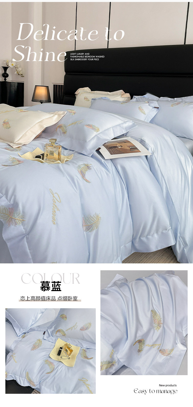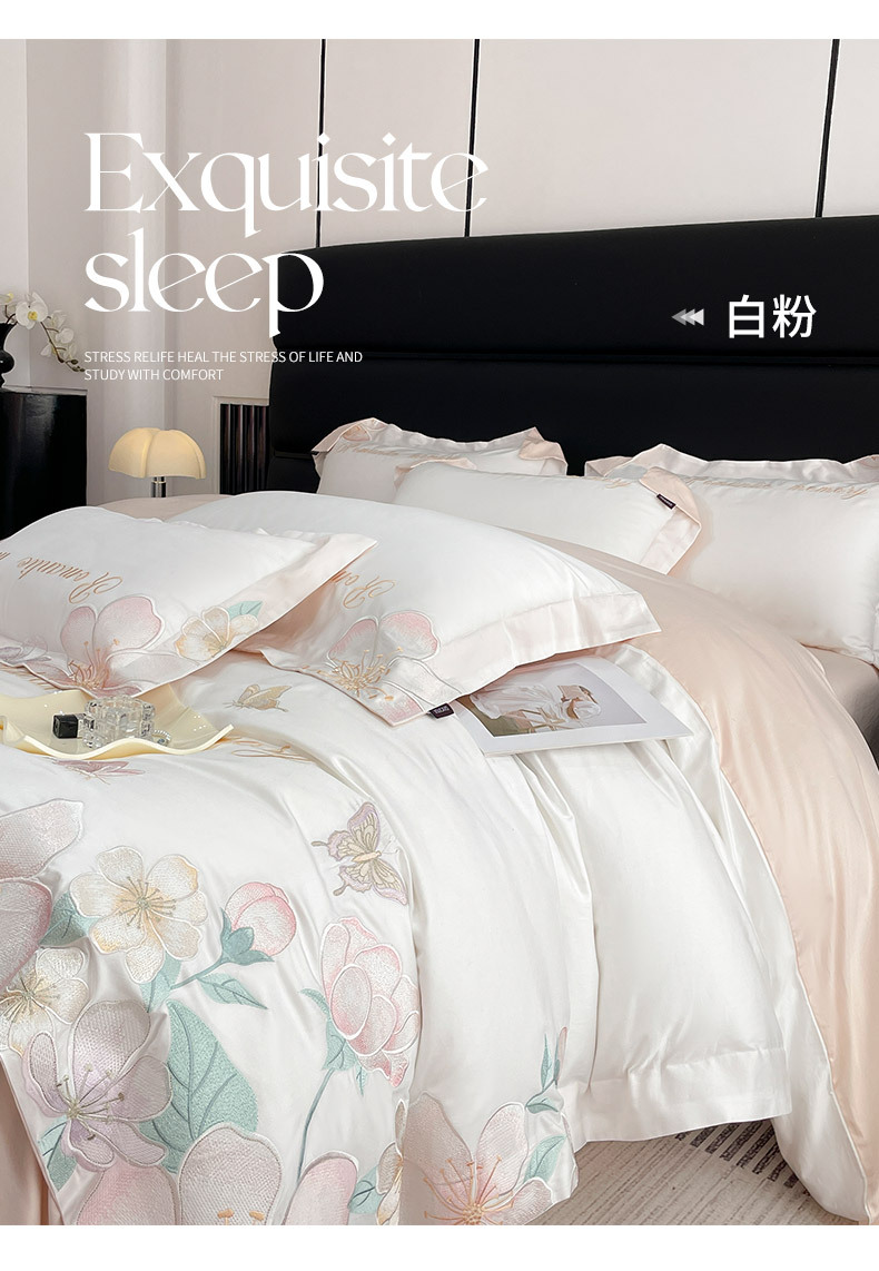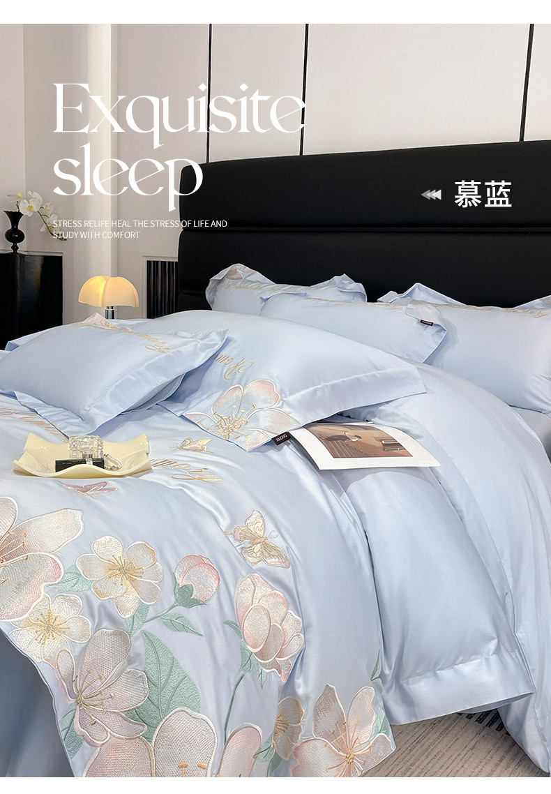 클래스 A 모자 유아 학년 100 롱 스테이플 코튼 라이트 럭셔리 4 피스 코튼 새틴 자수 코튼 침대 시트 이불 커버 4스토어 가기