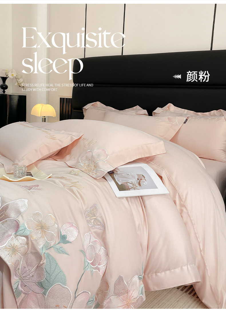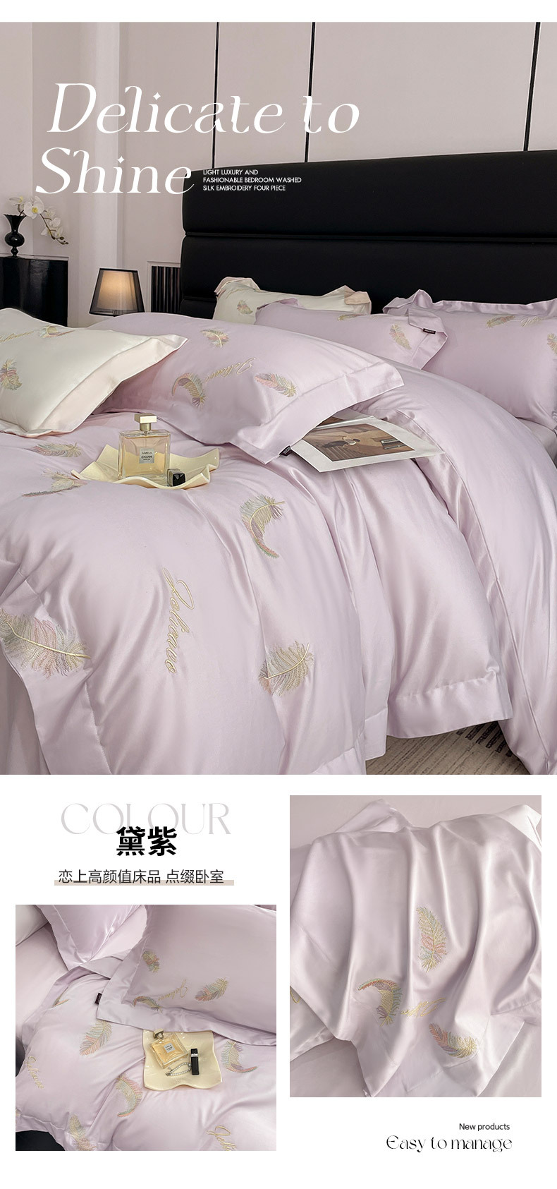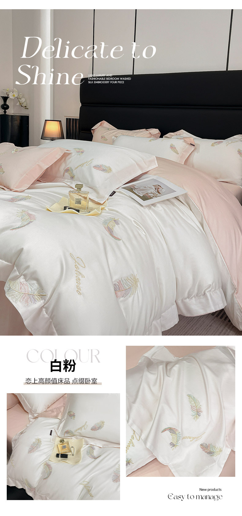 클래스 A 모자 유아 학년 100 롱 스테이플 코튼 라이트 럭셔리 4 피스 코튼 새틴 자수 코튼 침대 시트 이불 커버 4스토어 가기
