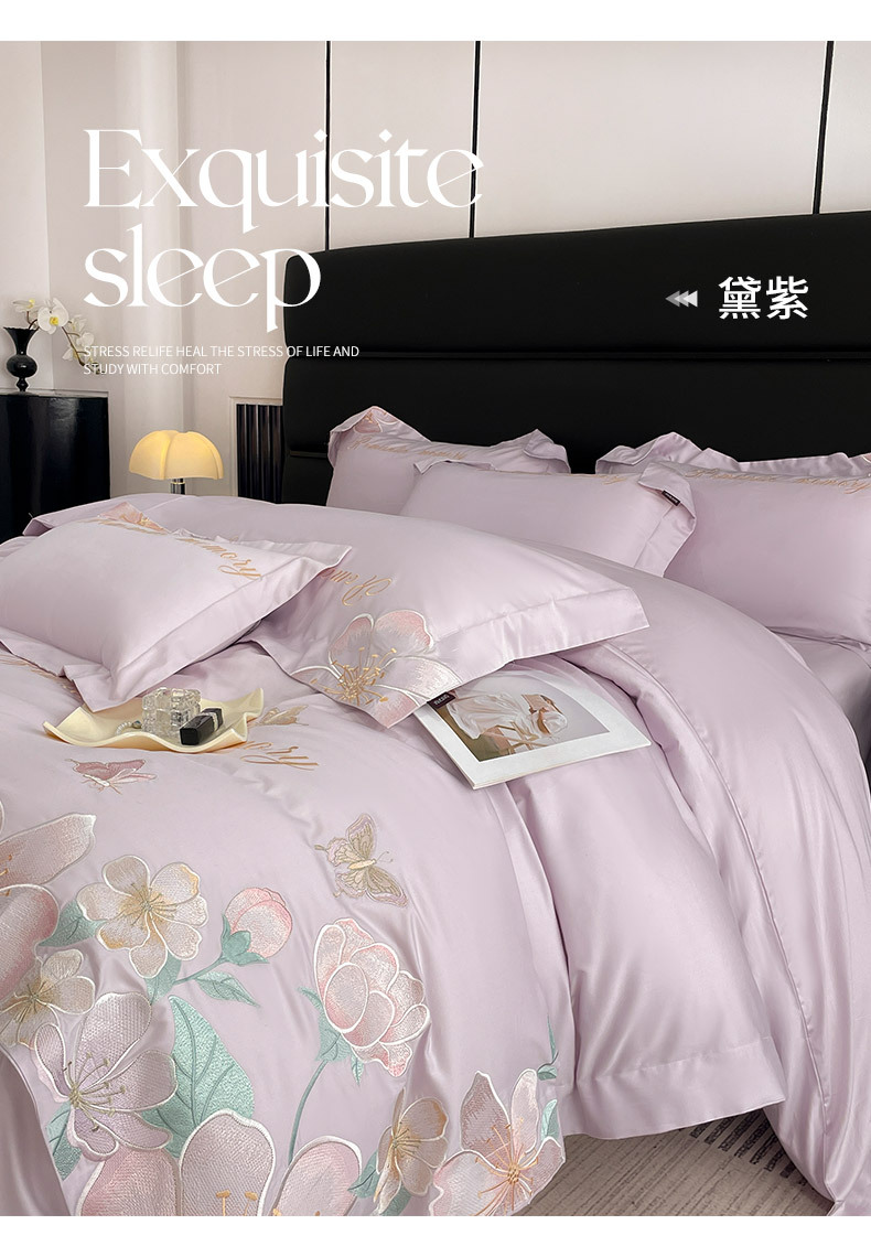 클래스 A 모자 유아 학년 100 롱 스테이플 코튼 라이트 럭셔리 4 피스 코튼 새틴 자수 코튼 침대 시트 이불 커버 4