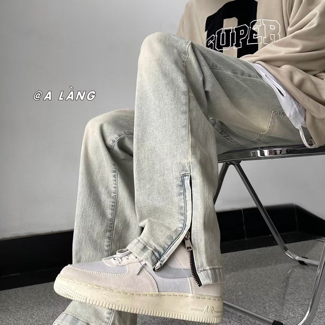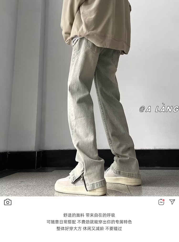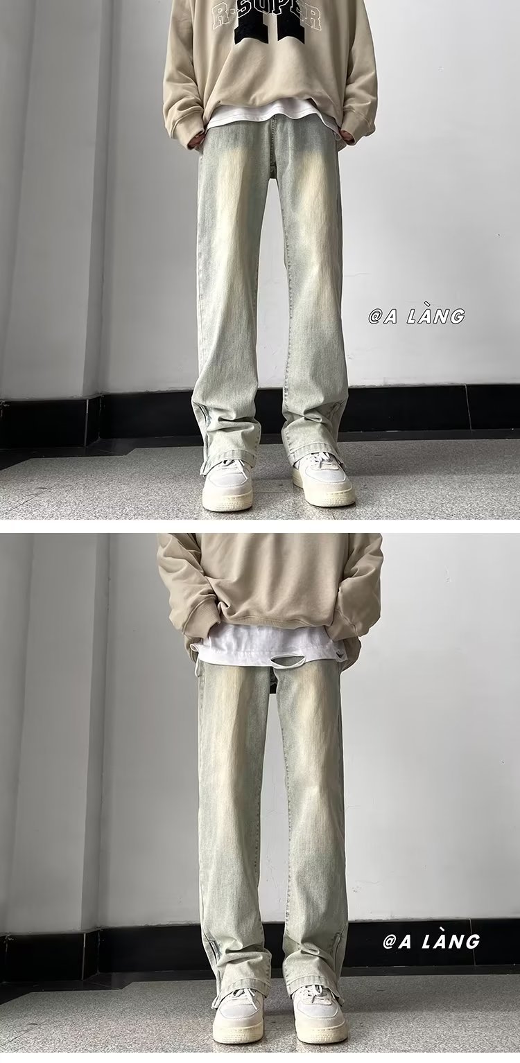 빈티지 옐로우 머드 청바지 소년 스플릿 스트레이트 팬츠 바이브 하이 스트리트 아메리칸 봄과 가을 느슨한 와이드 레그 팬츠스토어 가기