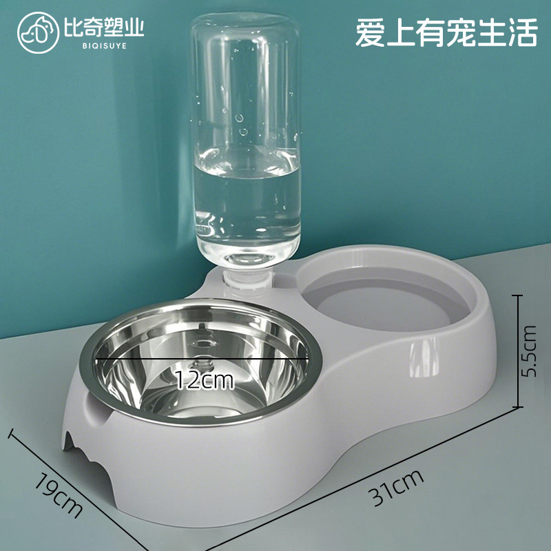 고양이 그릇, 애완 동물 그릇, 자동 물 디스펜서, 스테인레스 스틸 이중 그릇, 고양이와 개를위한 일체형 전복 방지 밥 그릇 제조 업체 도매스토어 가기
