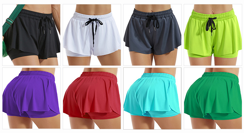 여성용 실크 투 요가 반바지 여름 고탄성 노출 방지 스포츠 바지 마라톤 트레이닝 피트니스 러닝 반바지스토어 가기