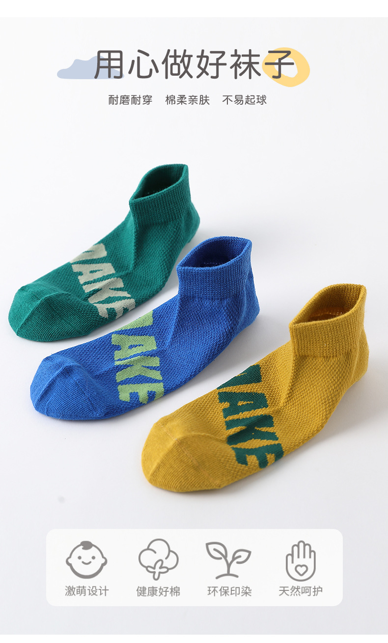 남아 양말 중대형 어린이와 학생을위한 면 여름 얇은 스포츠 양말 어린이 봄과 여름 메쉬 러닝 레터 짧은 양말스토어 가기