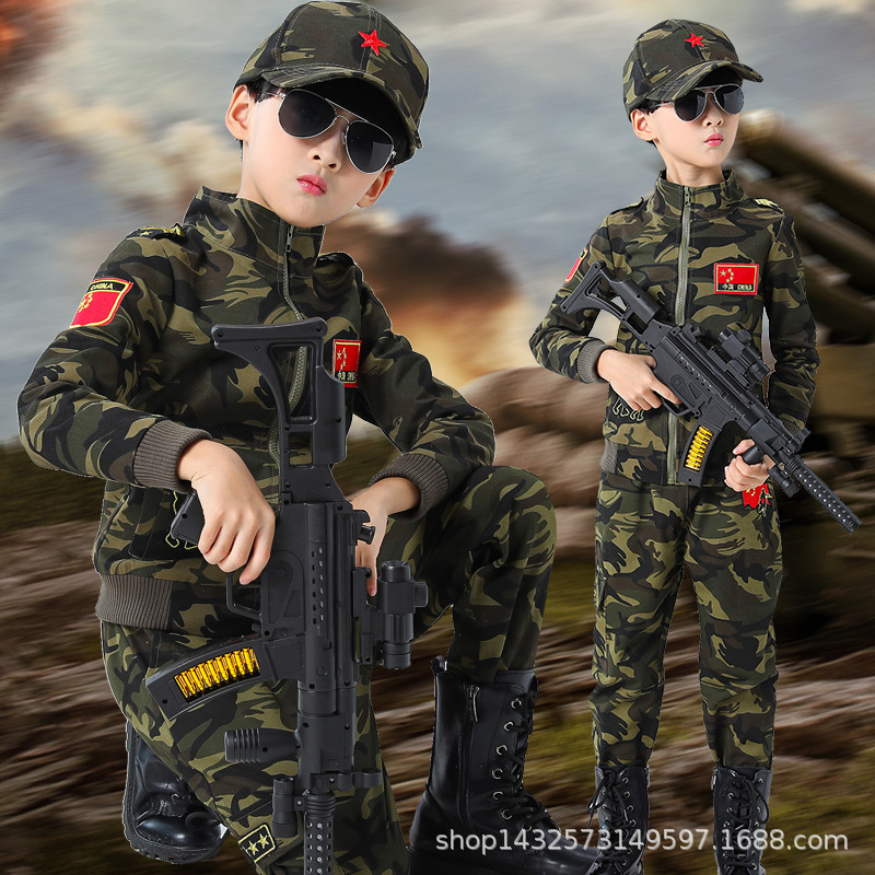 2023 위장 의류 세트 어린이 봄 아동 의류 기모 의류 특수 부대 군사 훈련 2 피스 지퍼스토어 가기