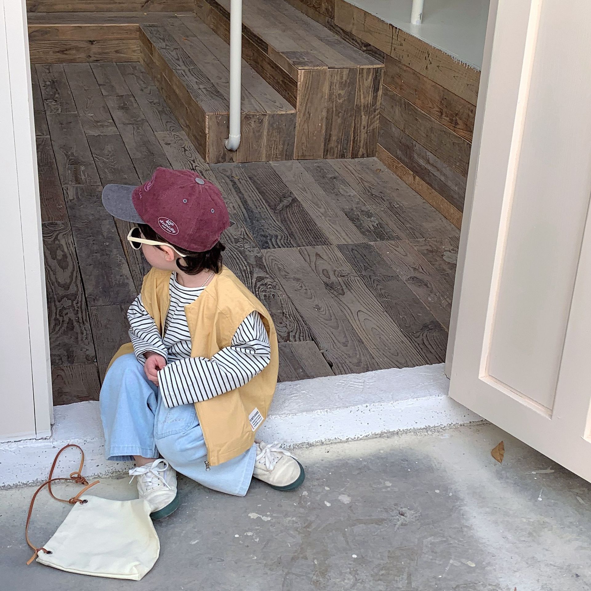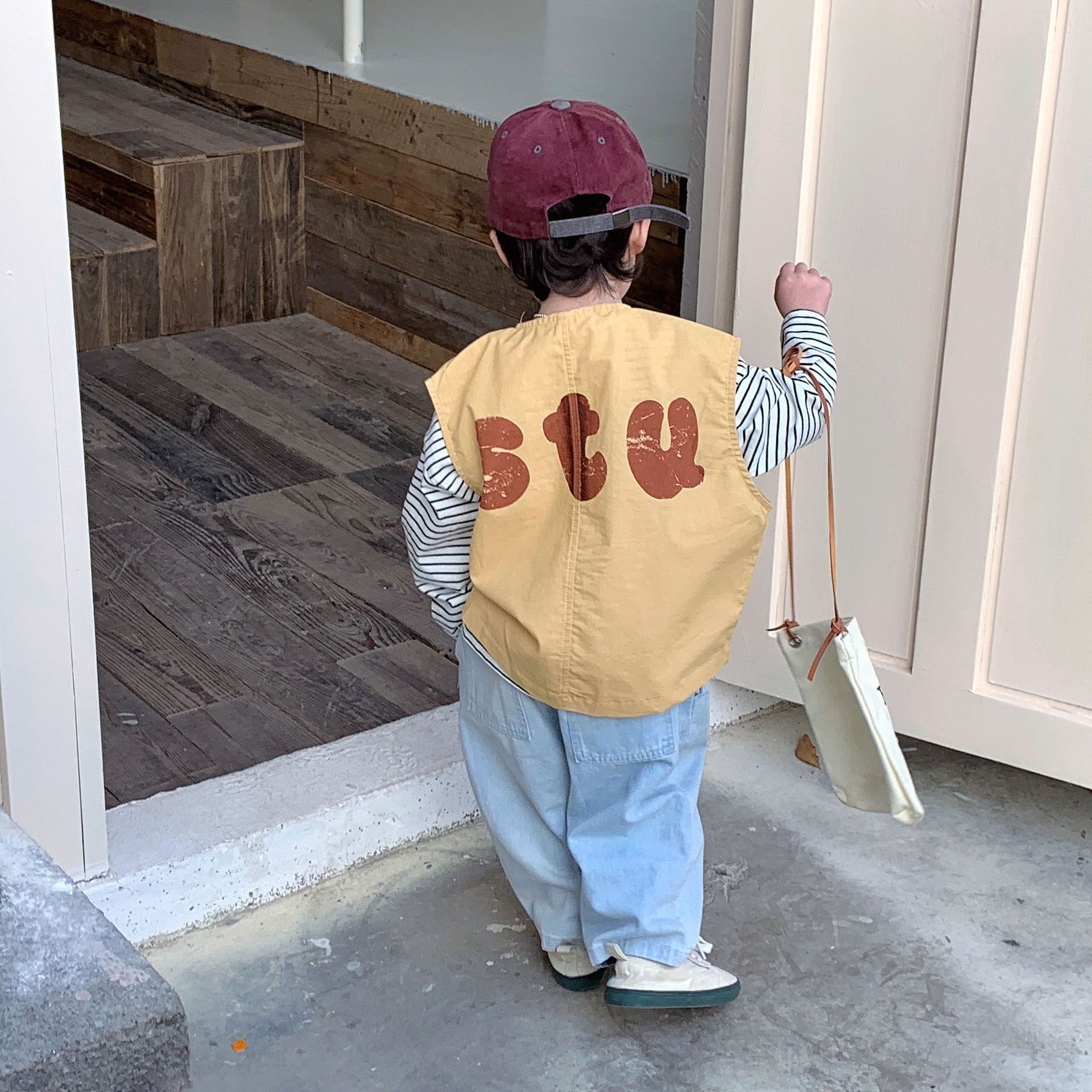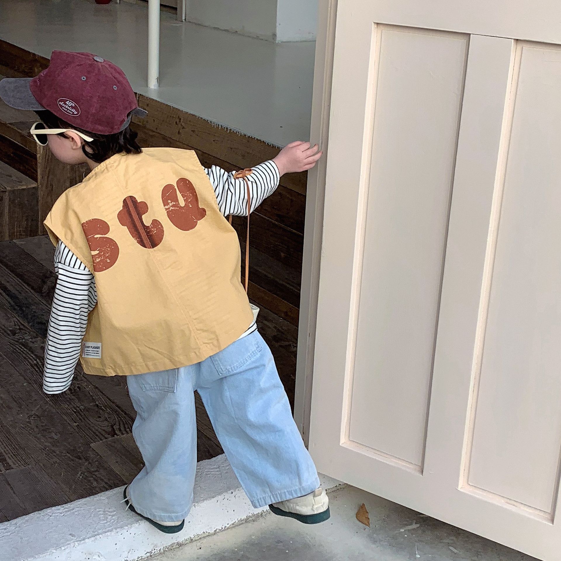 남성과 여성 및 어린이를위한 가을 아동복 레터 프린팅 지퍼 카디건 탑이있는 한국식 캐주얼 모든 매치 조끼 재킷스토어 가기