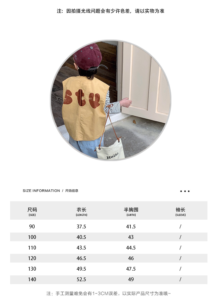남성과 여성 및 어린이를위한 가을 아동복 레터 프린팅 지퍼 카디건 탑이있는 한국식 캐주얼 모든 매치 조끼 재킷
