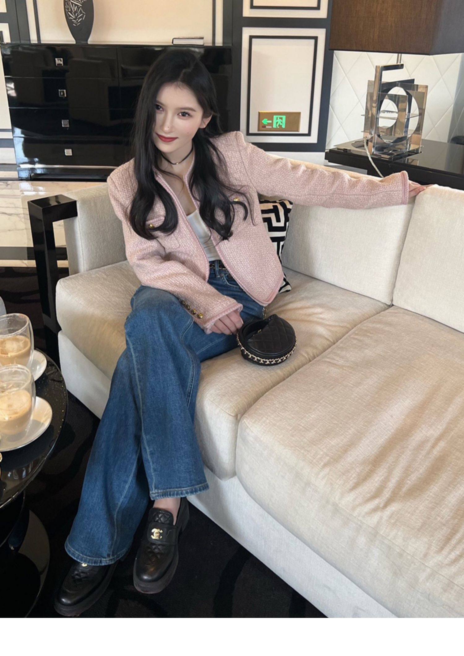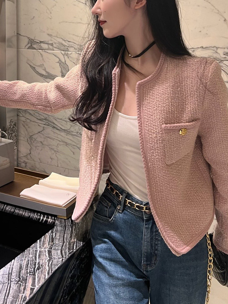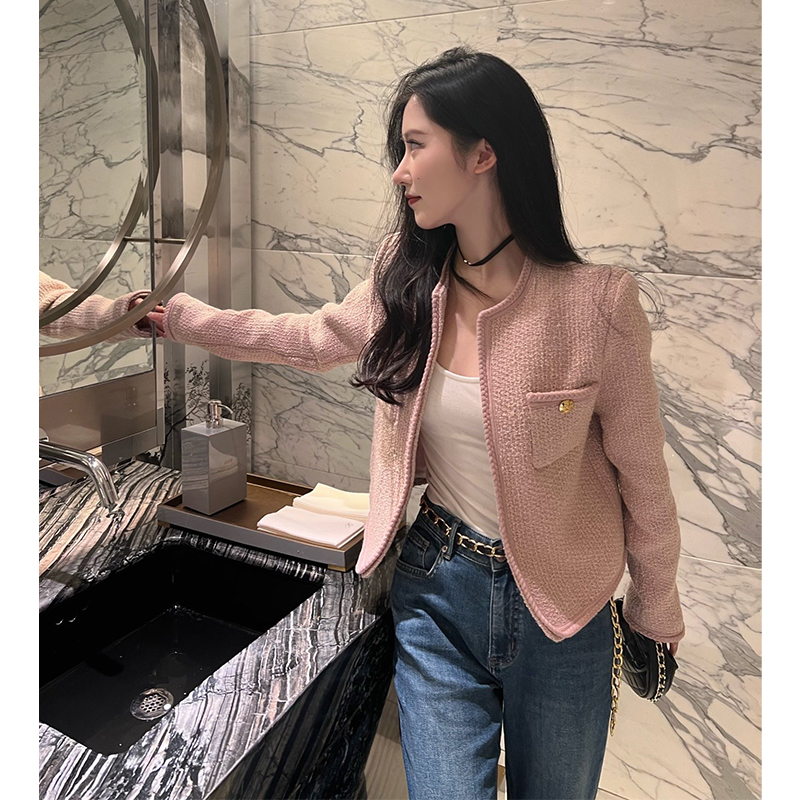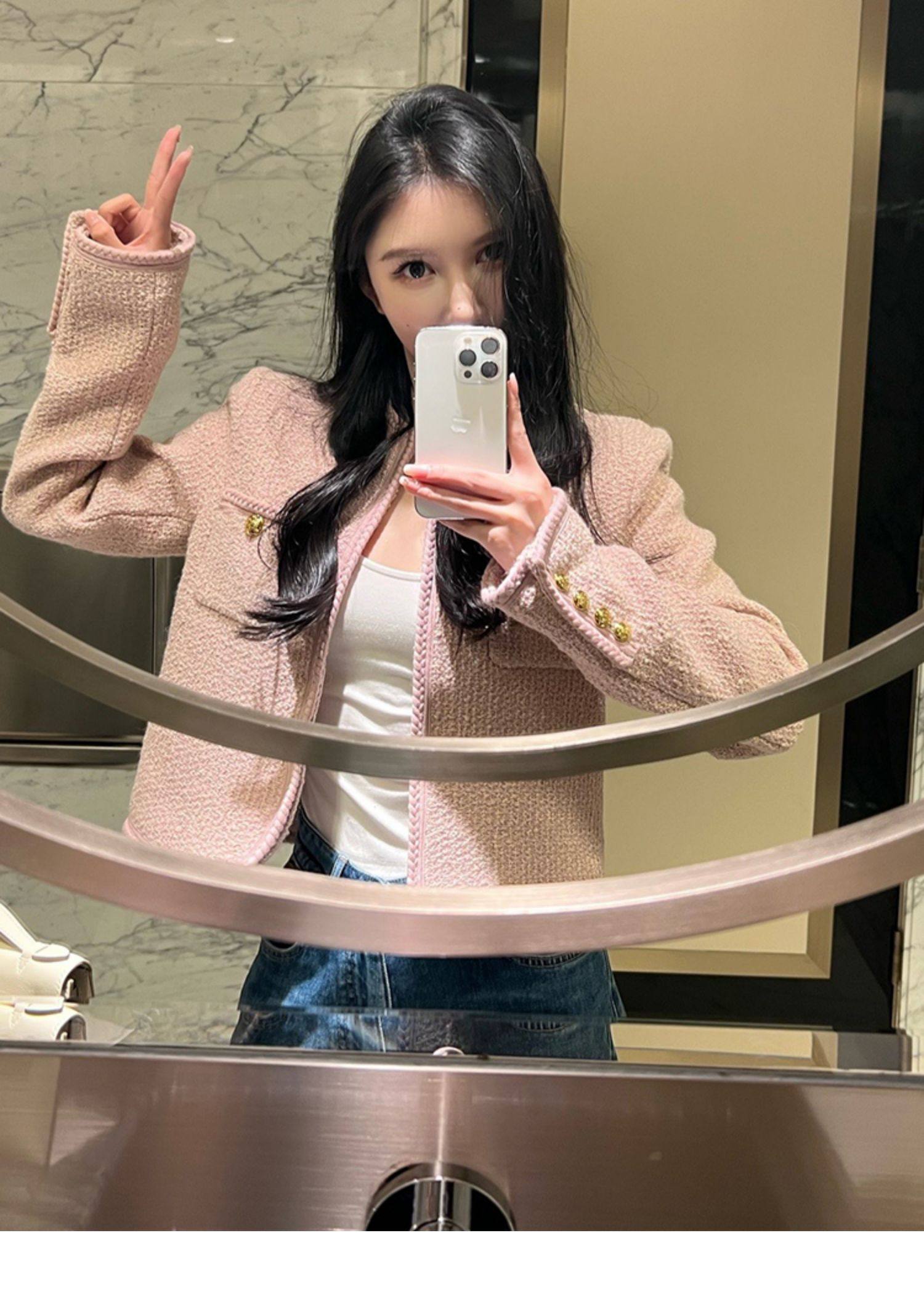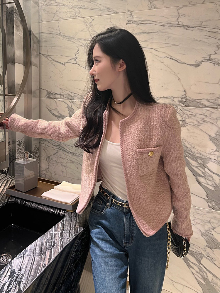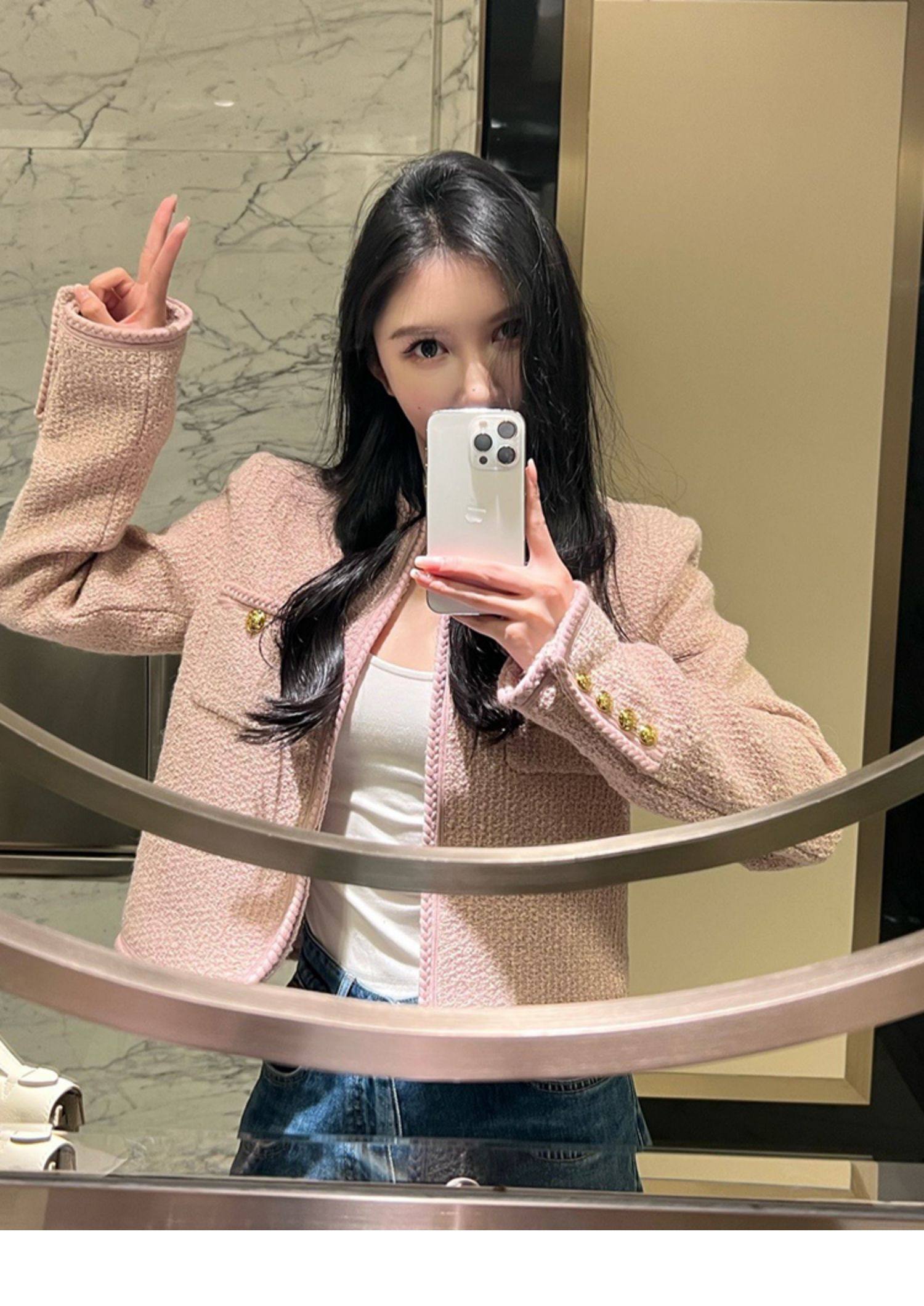 YT107775 새로운 프랑스 하이 엔드 센스 슈퍼 잘 생긴 기질 사교계 짧은 두꺼운 작은 샤넬 스타일 핑크 코트 여성