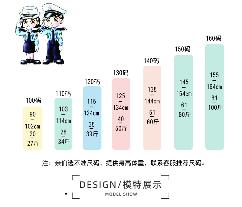 어린이 경찰 의류 초등 및 중등 학생 의시 암송 정원 의류 합창 의류 소년 소녀를위한 유치원 공연 깃발 모금 유니폼스토어 가기