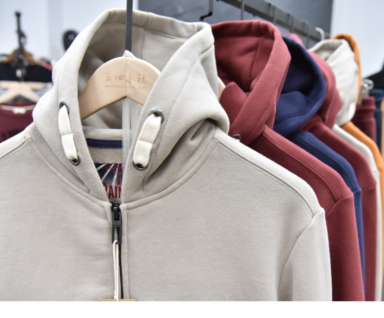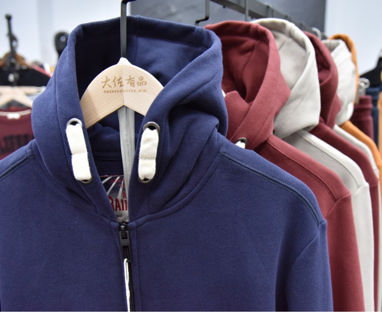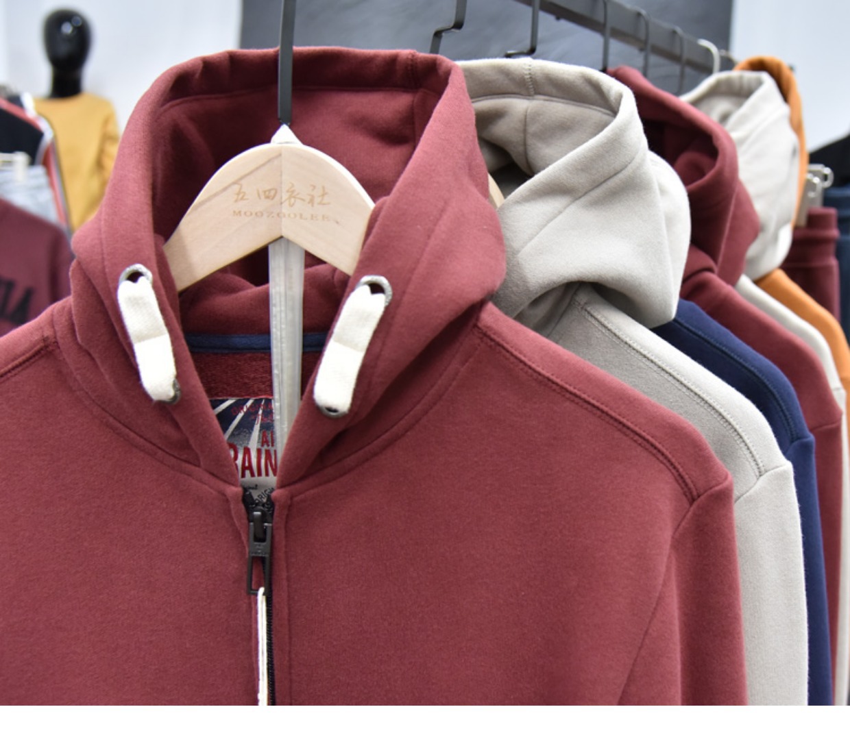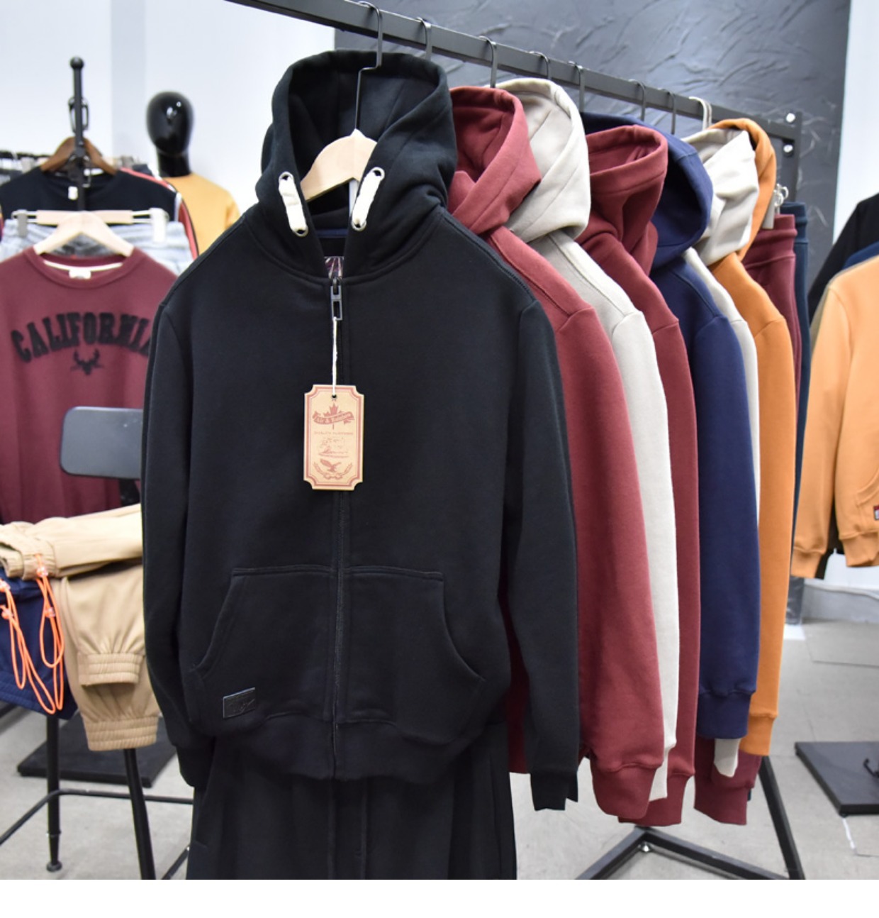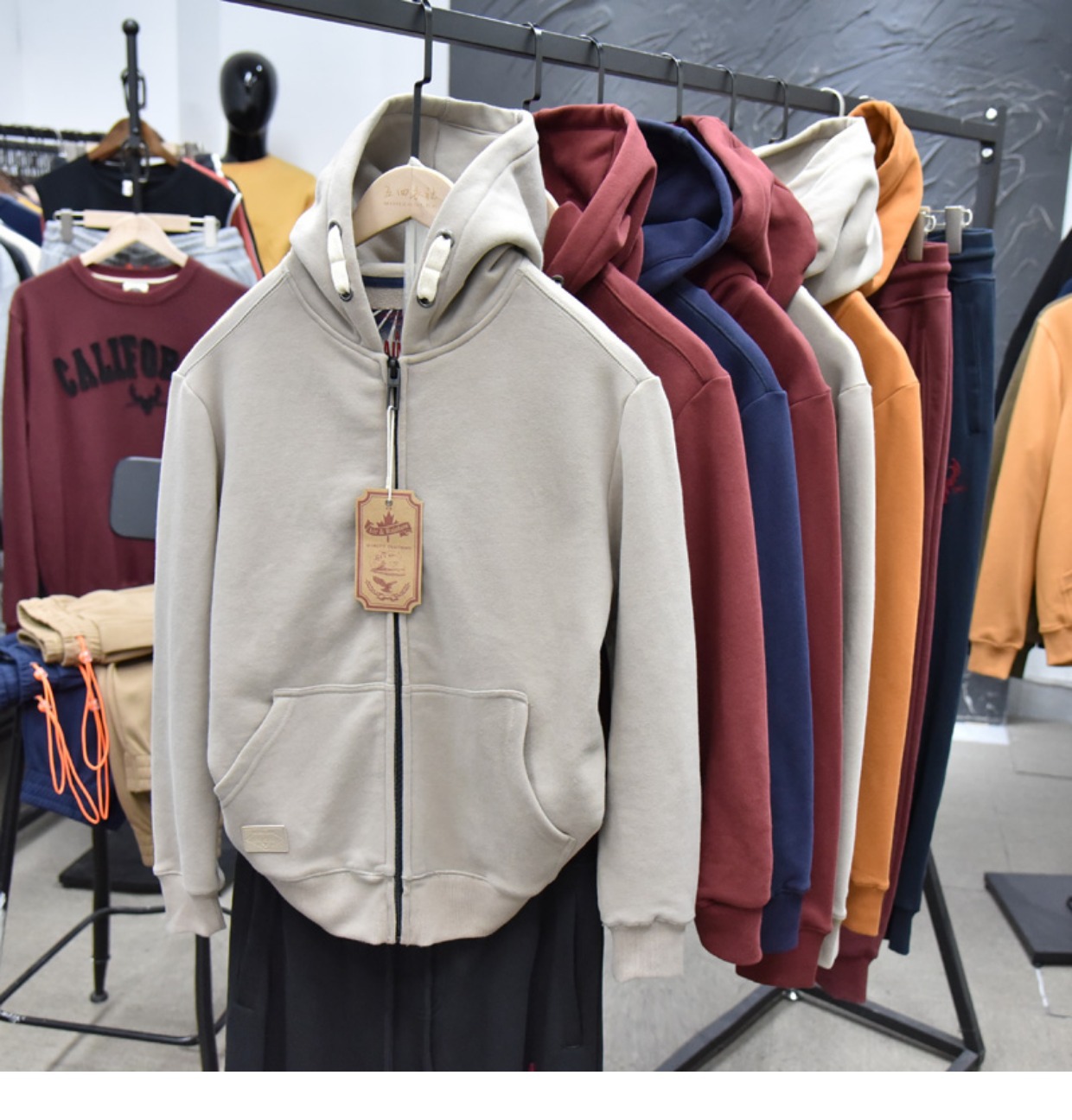 무거운 디자인 감각! 가을과 겨울 샌딩 코튼 기모 후드 스웨트 남성용 루즈 캐주얼 커플 지퍼 재킷스토어 가기