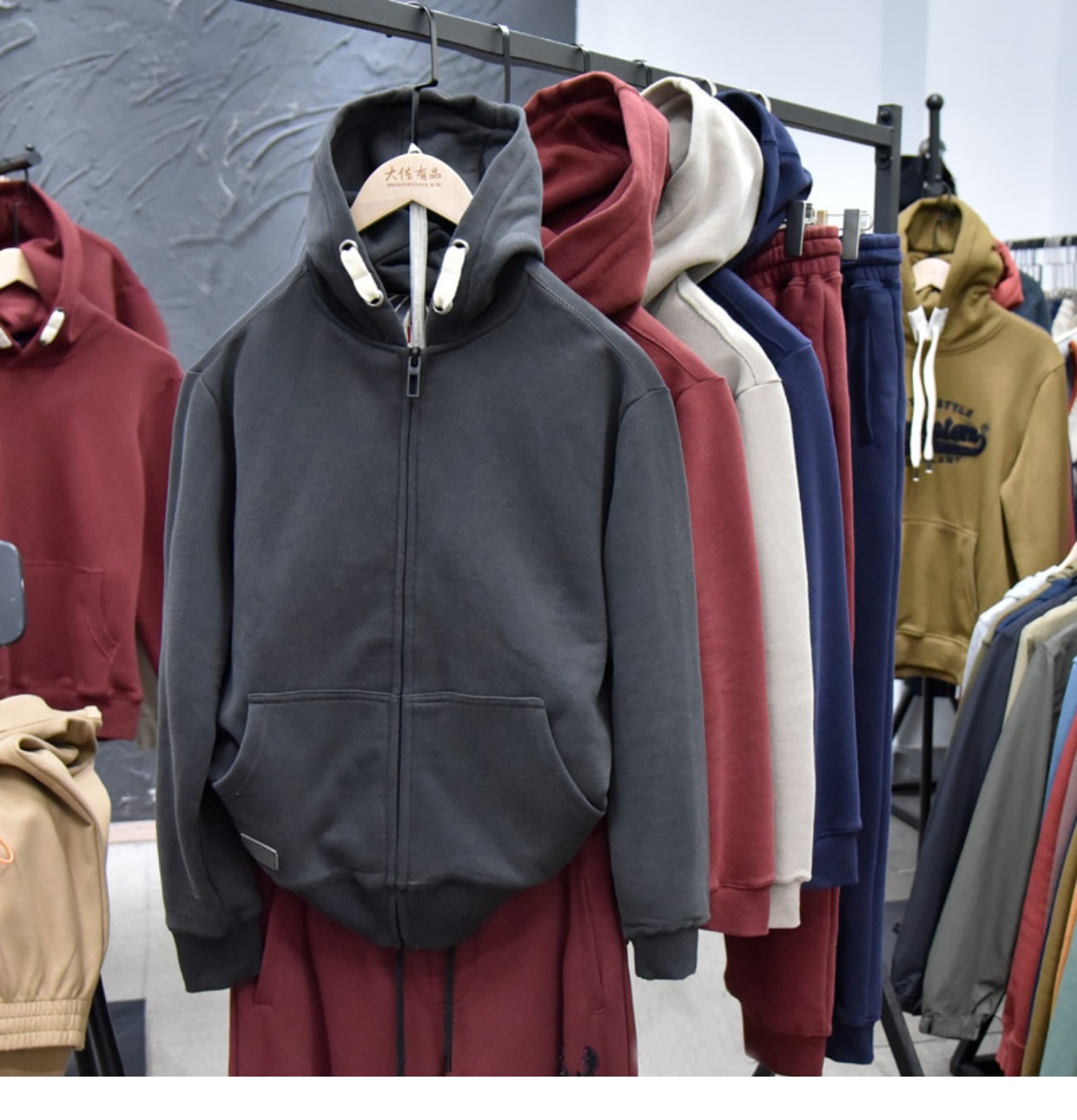 重磅设计感!秋冬磨毛棉加绒连帽卫衣男 宽松休闲情侣拉链外套