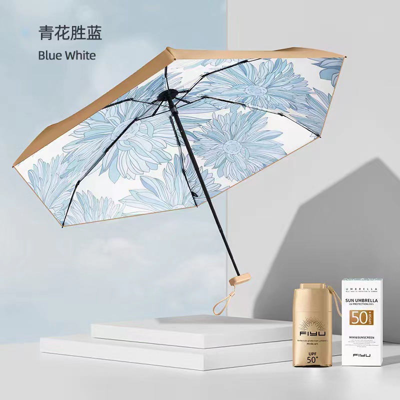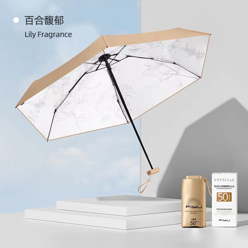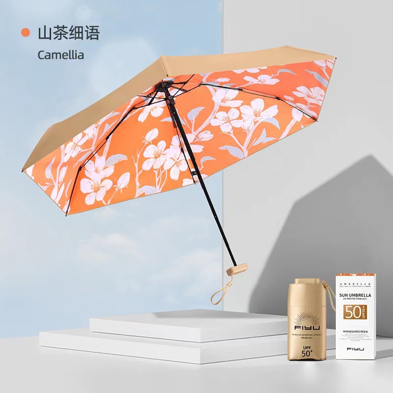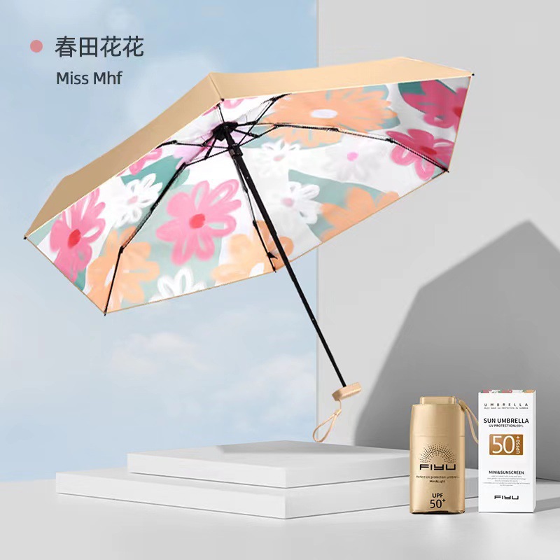 FIYU 작은 금 우산 1.02.03.04.0 손바닥 우산 태양 우산 여성용 소형 휴대용 자외선 차단제 UV 차양 우산