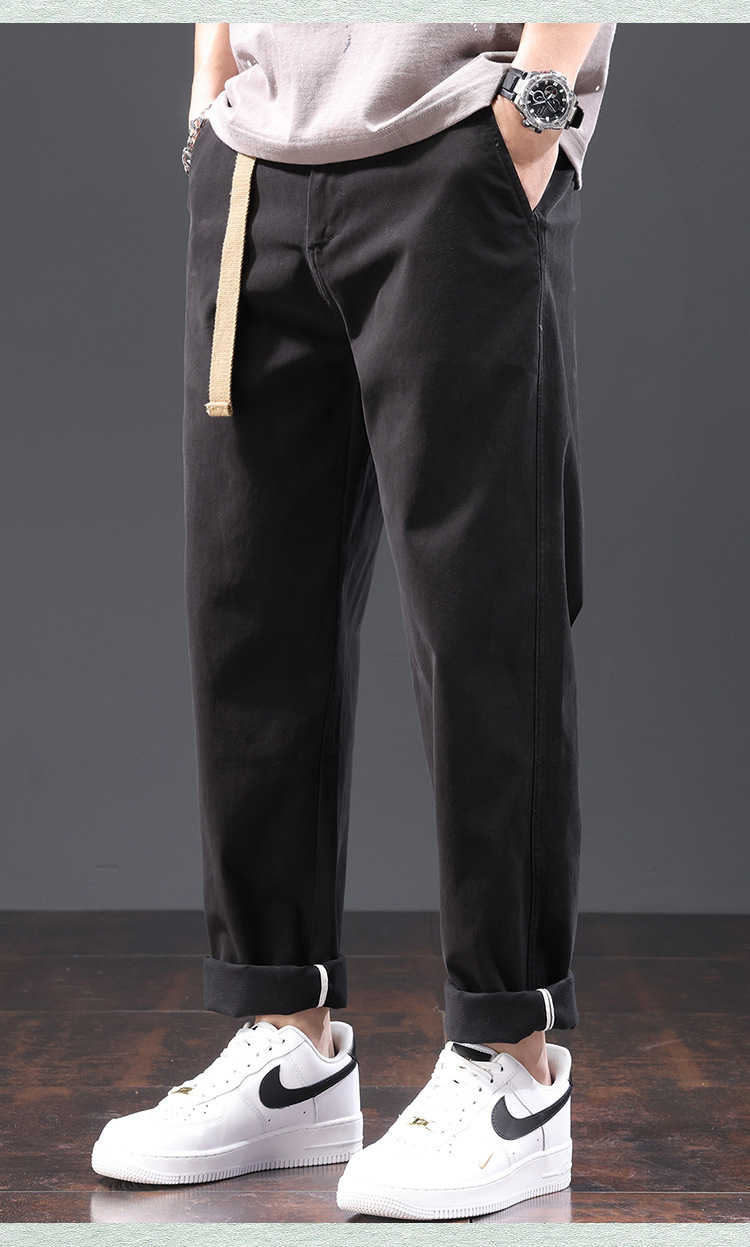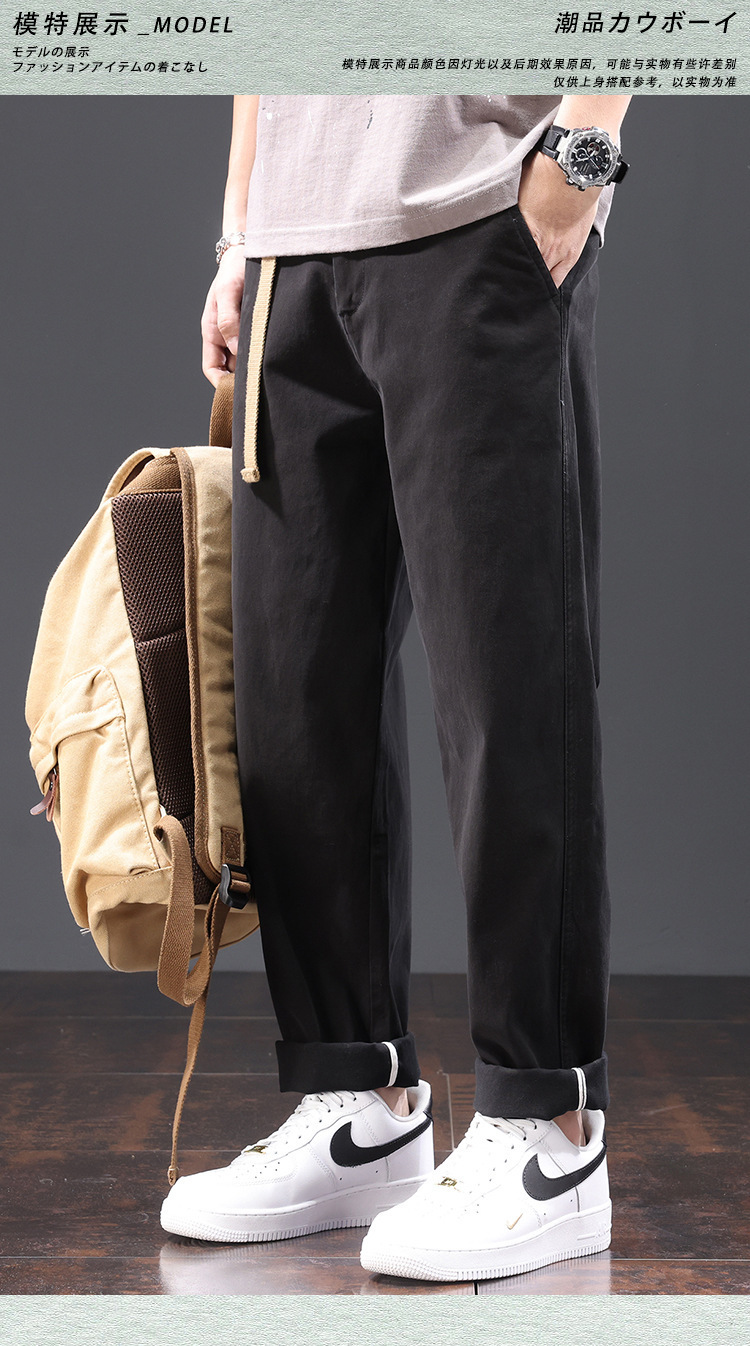 TikTok 폭발 남자의 홍콩 스타일 개인화 된 새로운 느슨한 스트레이트 캐주얼 바지 십대를위한 트렌디 한 롱 팬츠