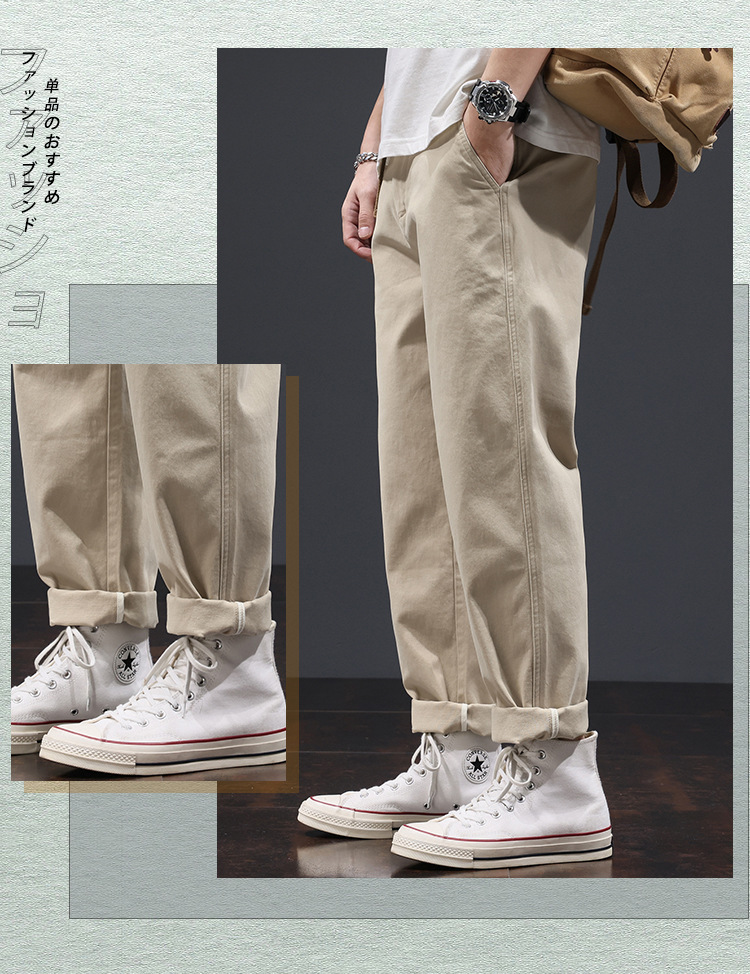 TikTok 폭발 남자의 홍콩 스타일 개인화 된 새로운 느슨한 스트레이트 캐주얼 바지 십대를위한 트렌디 한 롱 팬츠스토어 가기