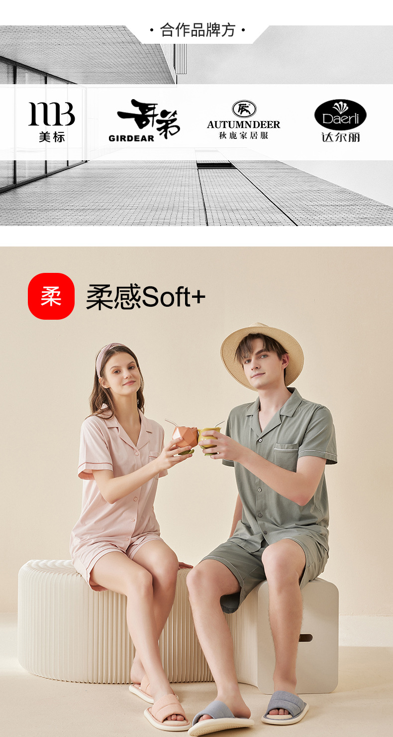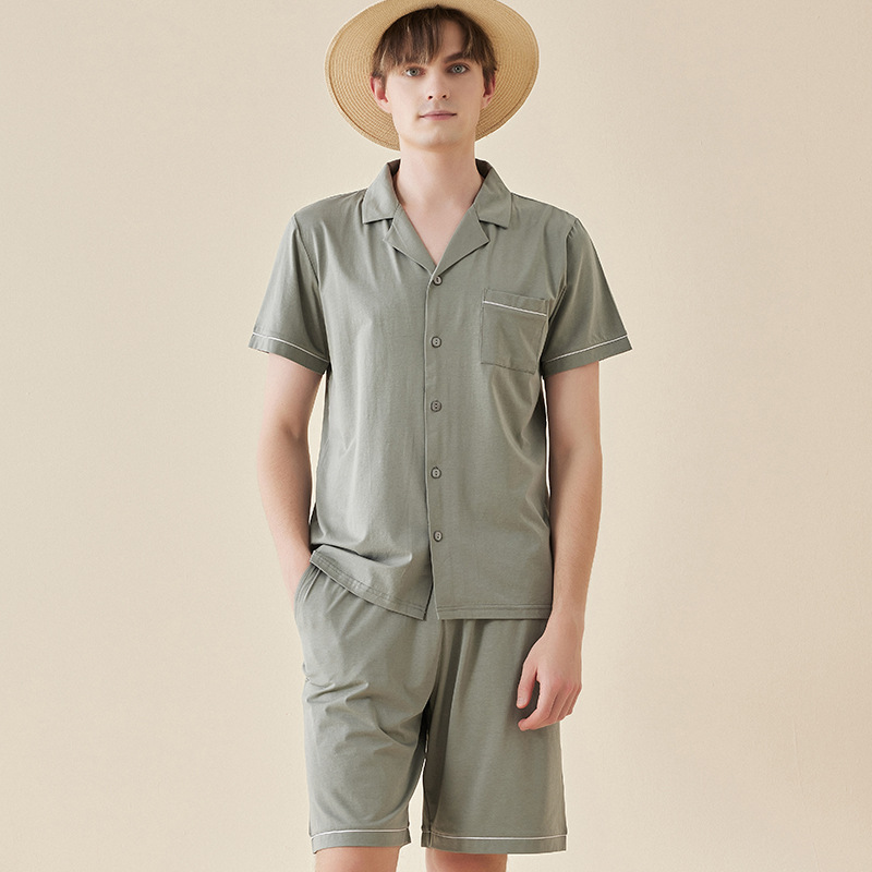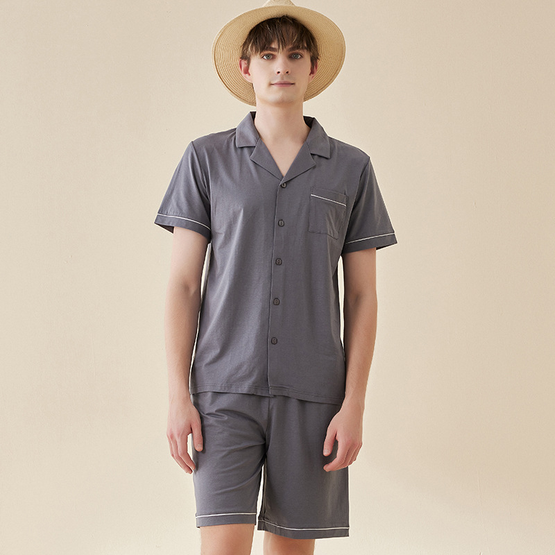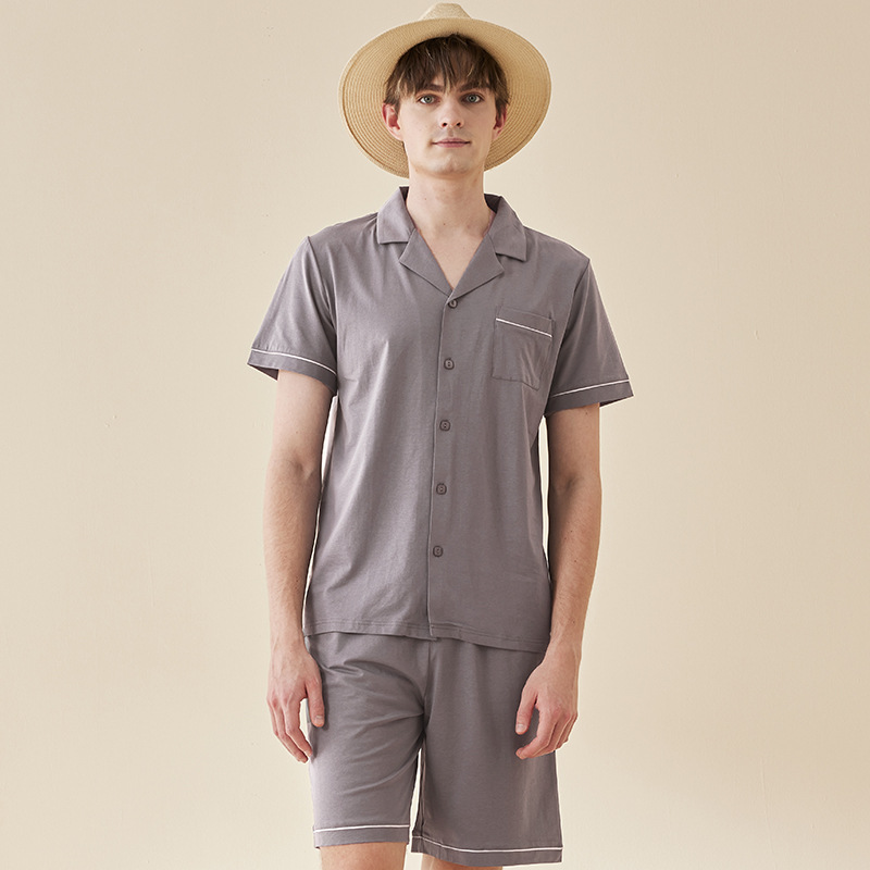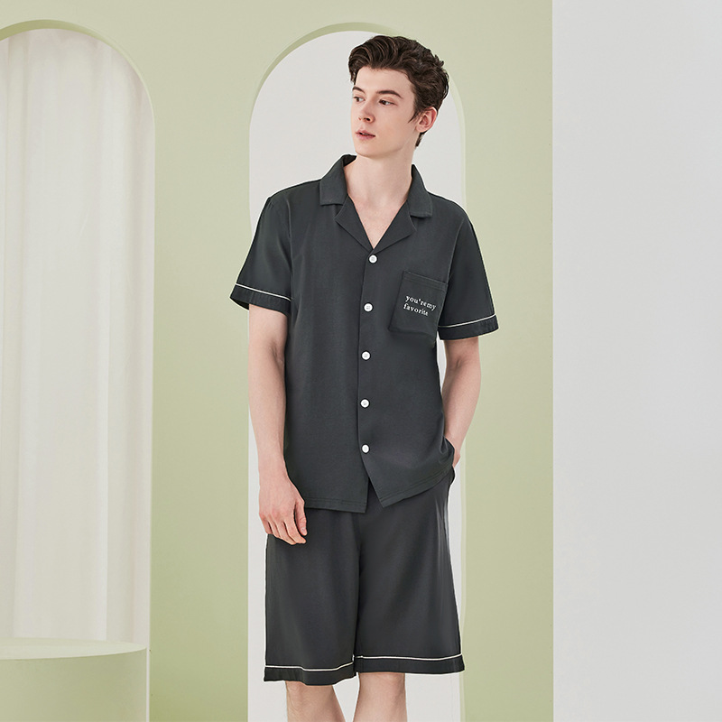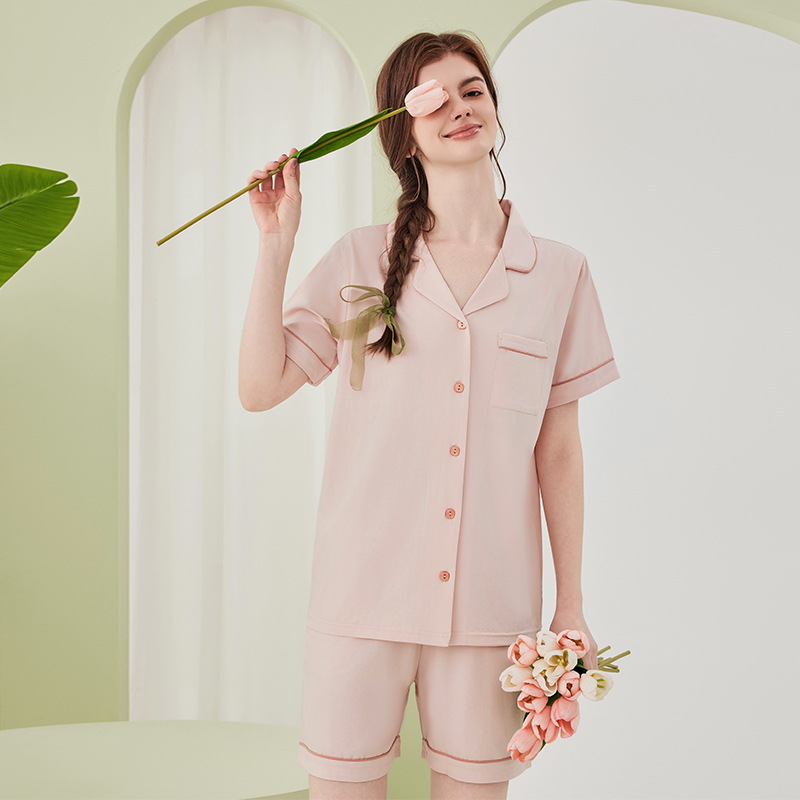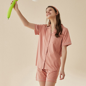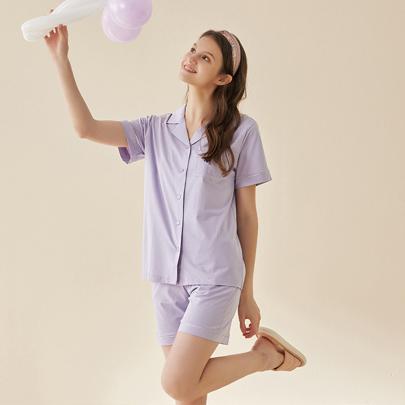 Lanjing 모달 면 반팔 반바지 커플 가정 옷 세트 간단한 옷깃 남자의 잠옷 여자의 여름 도매스토어 가기