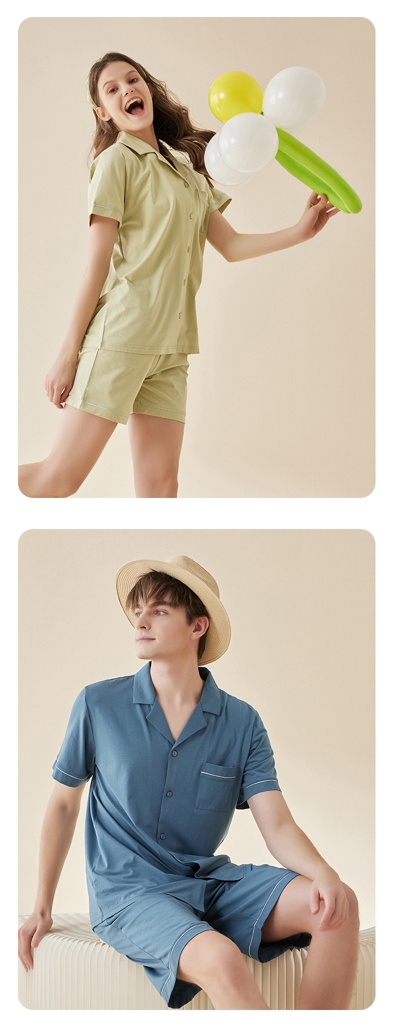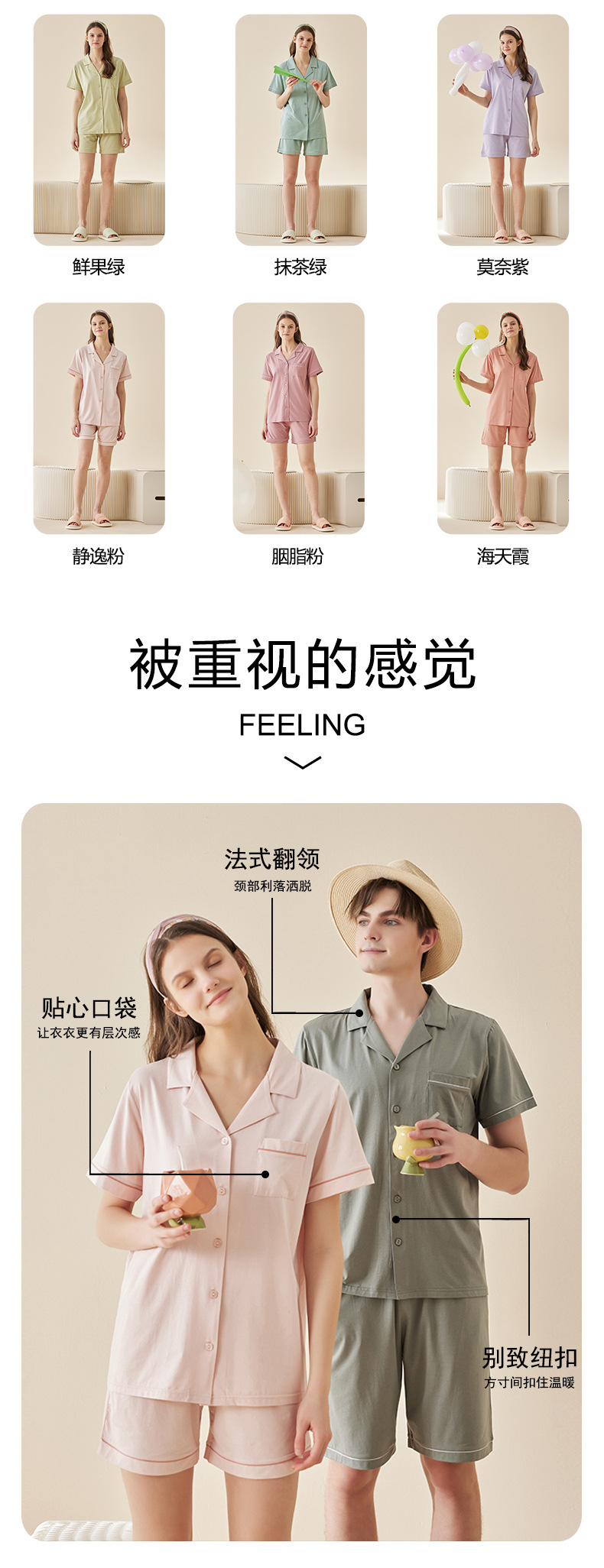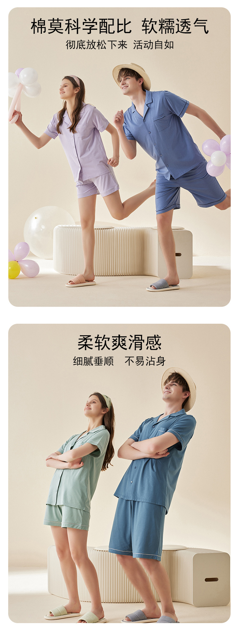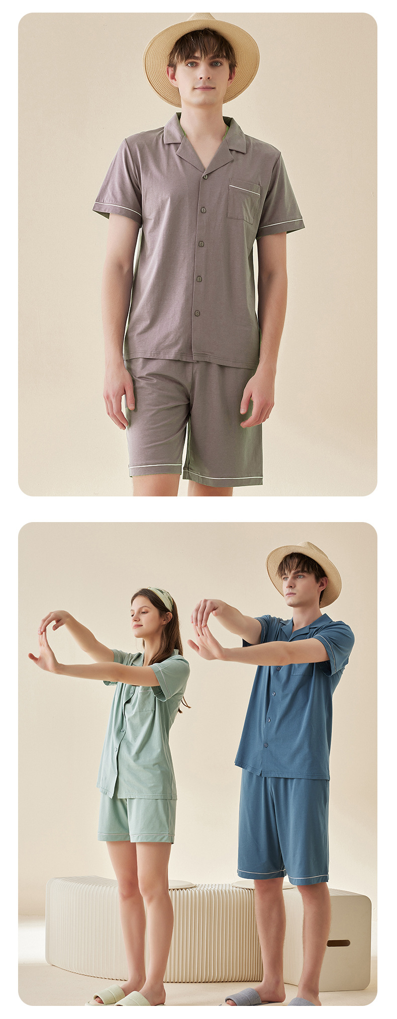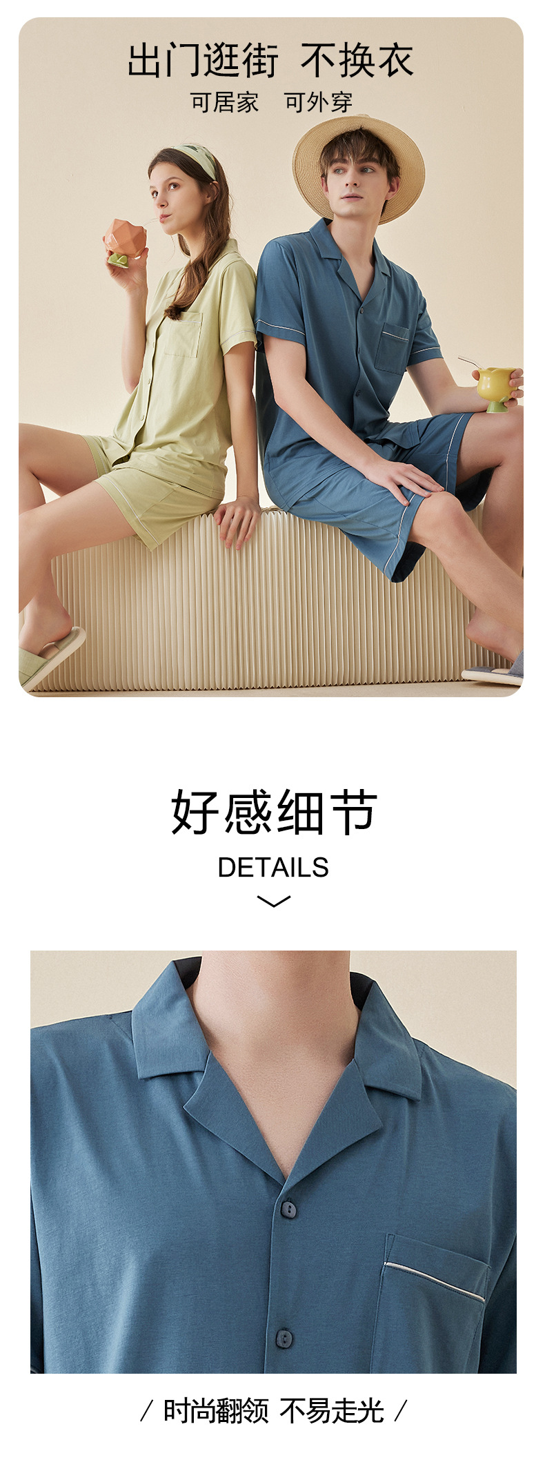 Lanjing 모달 면 반팔 반바지 커플 가정 옷 세트 간단한 옷깃 남자의 잠옷 여자의 여름 도매스토어 가기