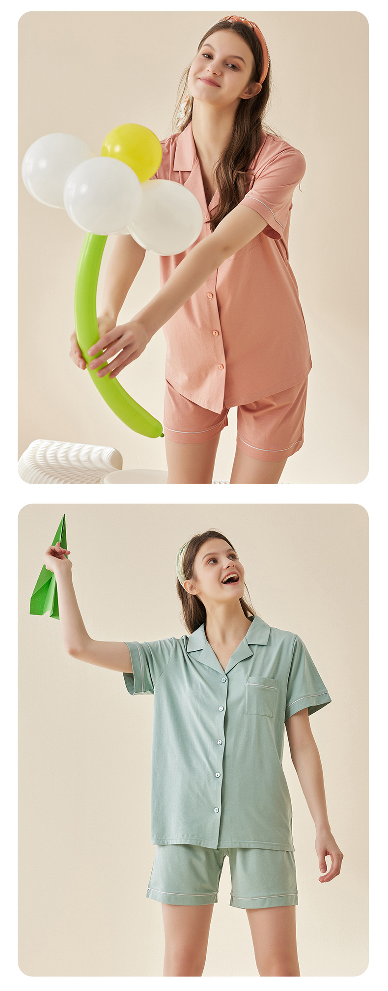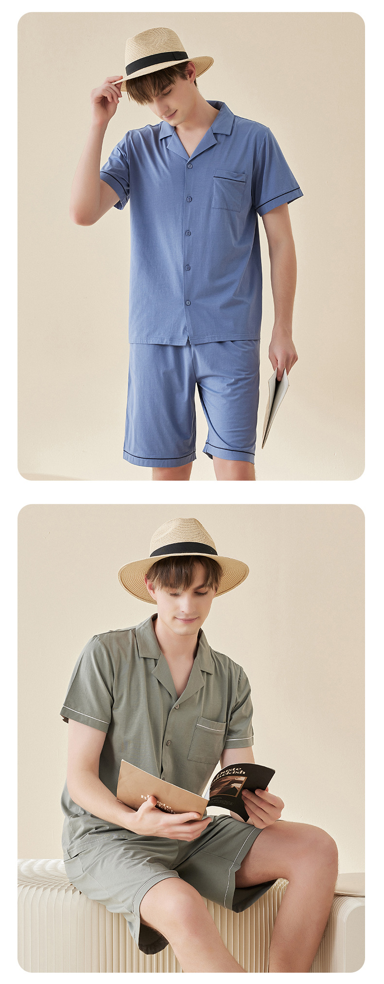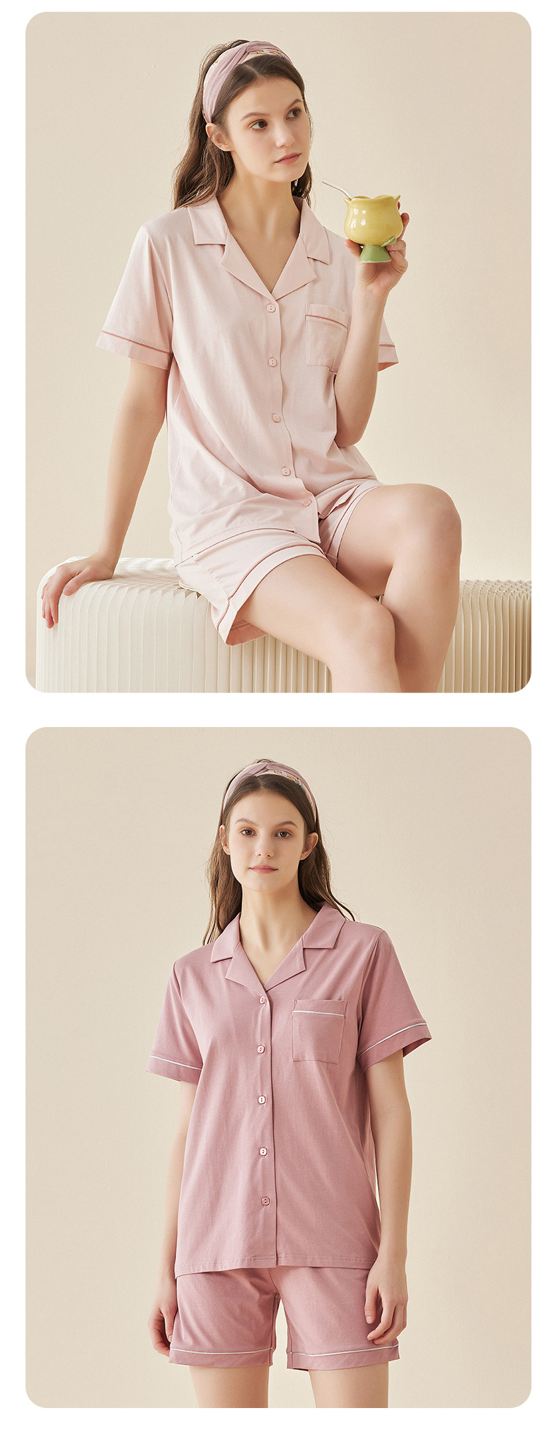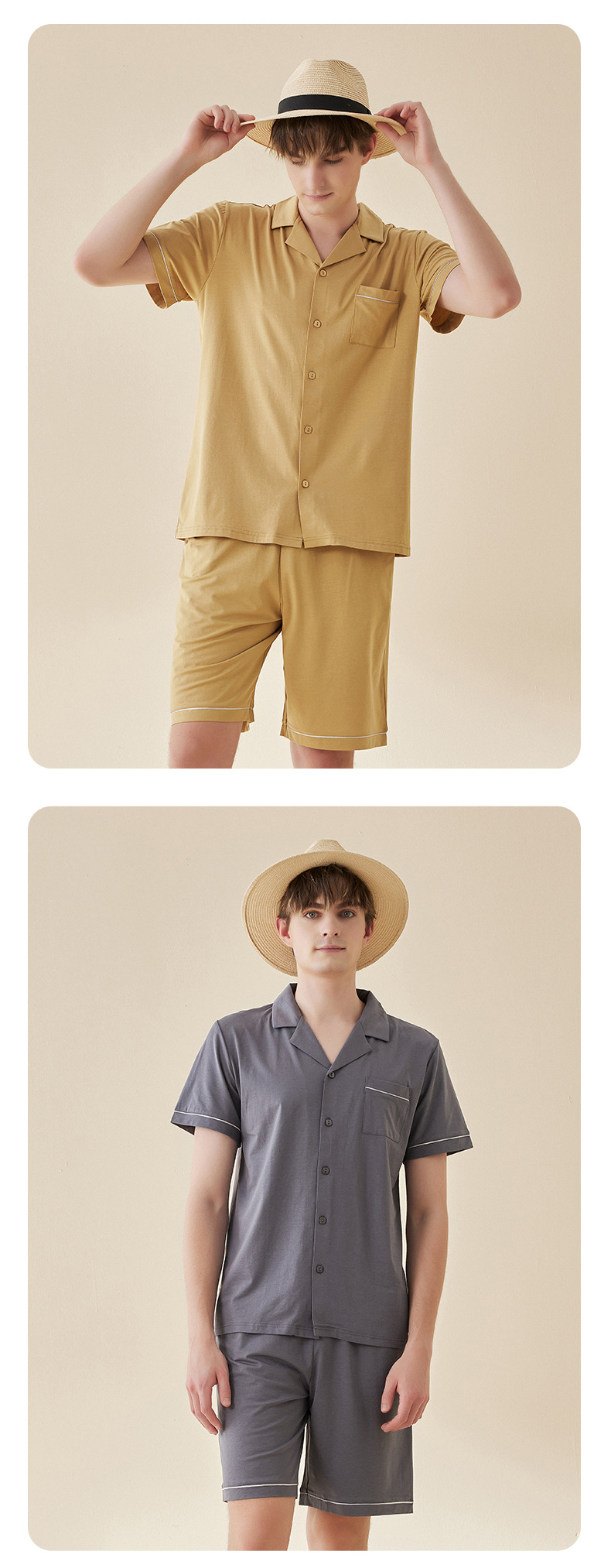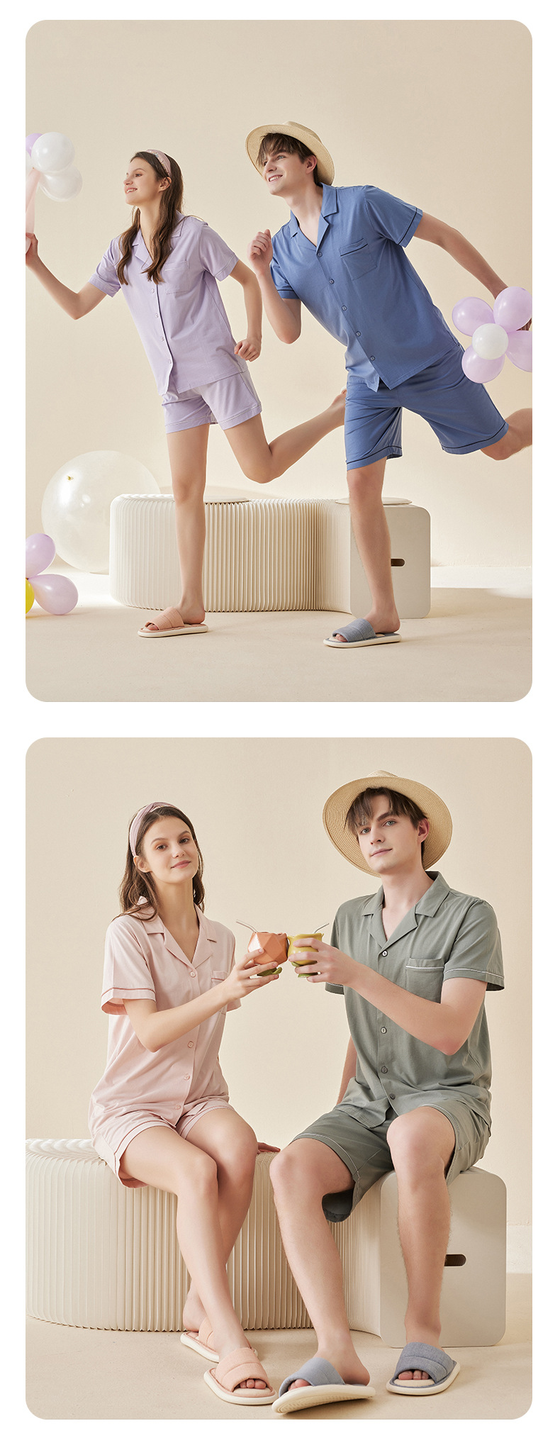 Lanjing 모달 면 반팔 반바지 커플 가정 옷 세트 간단한 옷깃 남자의 잠옷 여자의 여름 도매스토어 가기
