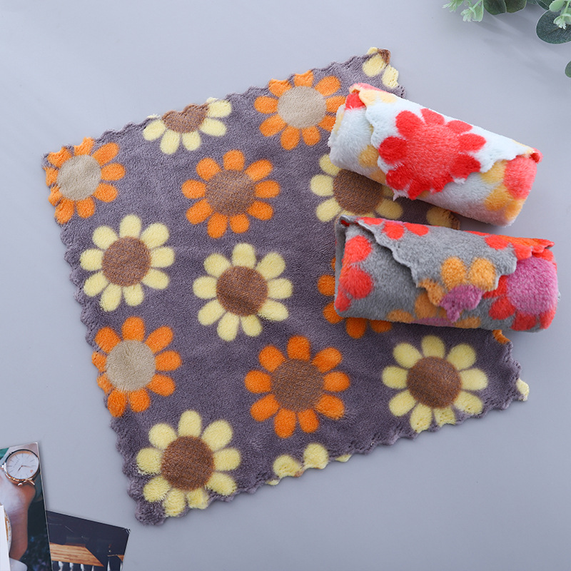 加厚珊瑚绒印花方巾柔软吸水不掉毛厨房清洁擦手洗碗多功能小毛巾