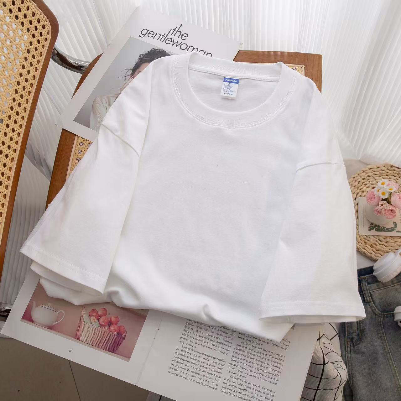 퓨어 코튼 반팔 티셔츠 여성 여름 한국식 루즈 라운드 넥 스타일 인쇄 올매치 하라주쿠 스타일 유행 여성 탑