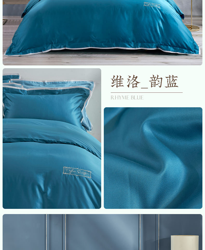 Yuanmeng Willow 라이트 blue_toffee 새틴 코튼 4 장 봄과 여름 심플 라이트 럭셔리 고급감 침대 시트 이불 커버