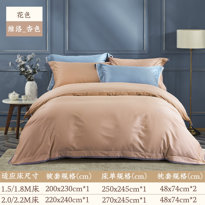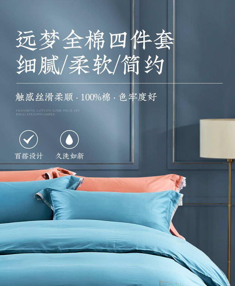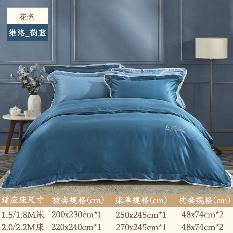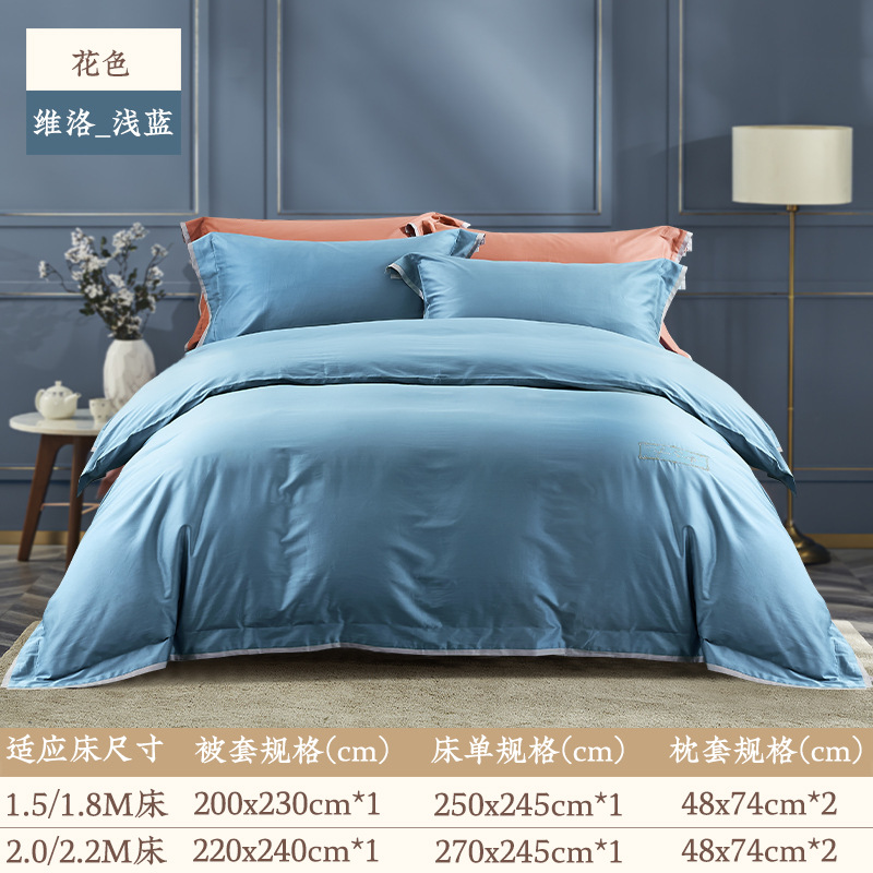 Yuanmeng Willow 라이트 blue_toffee 새틴 코튼 4 장 봄과 여름 심플 라이트 럭셔리 고급감 침대 시트 이불 커버스토어 가기
