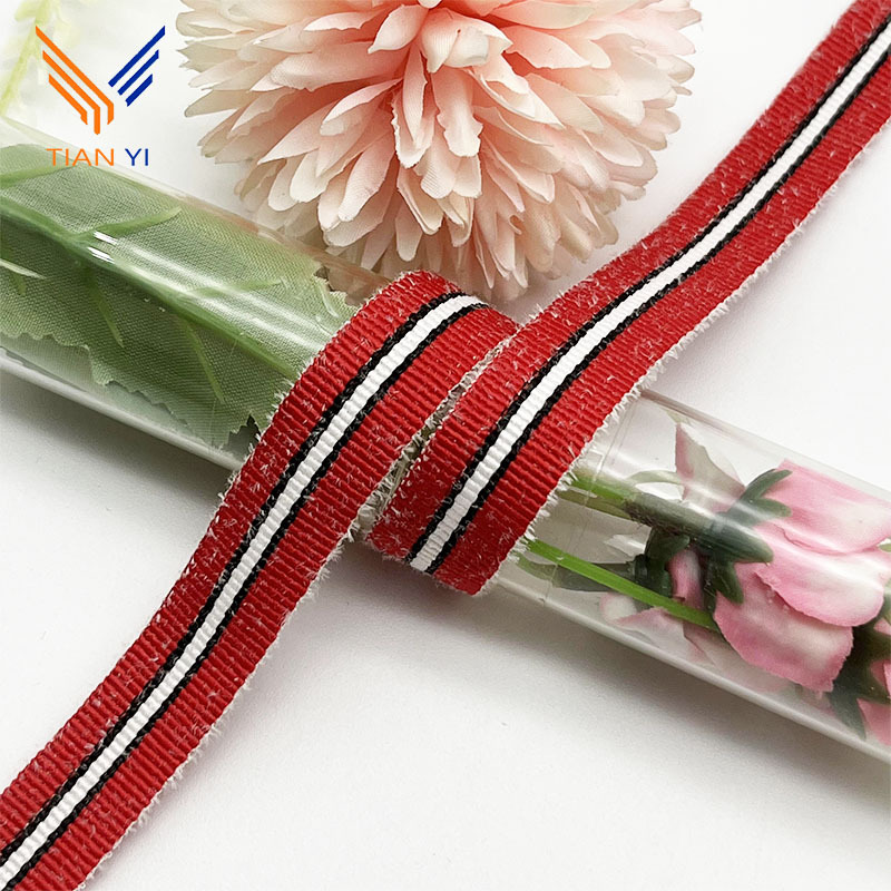 새로운 재고 플러시 인터 컬러 폴리에스터 면 자카드 리본 홈 섬유 가방 아동복 포장 스트립 의류 액세서리