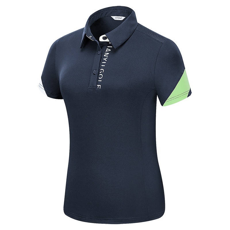 여름 골프 여성용 반팔 티셔츠 폴로 셔츠 대비 색상 속건 스트레치 슬리밍 스포츠 저지 탑 의류스토어 가기