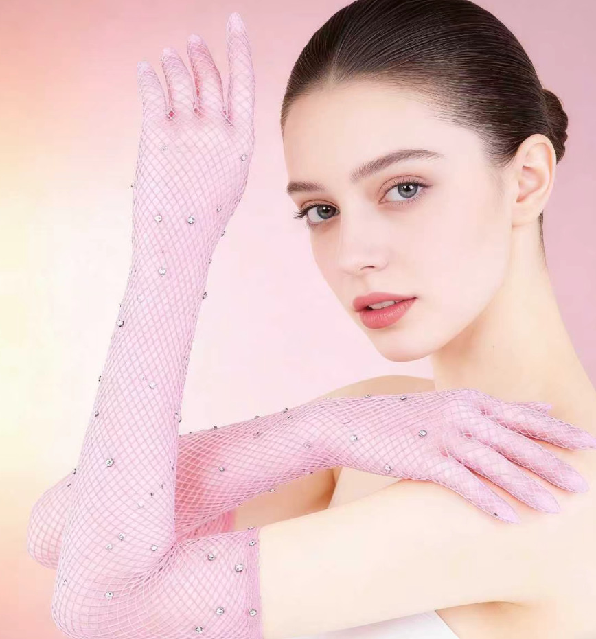 크로스 보더 새로운 핫 드릴링 어망 장갑 섹시한 야간 상점 스타일 핫 드릴링 슬리브 긴 팔 커버 컬러 다이아몬드 장갑 유럽과 미국의