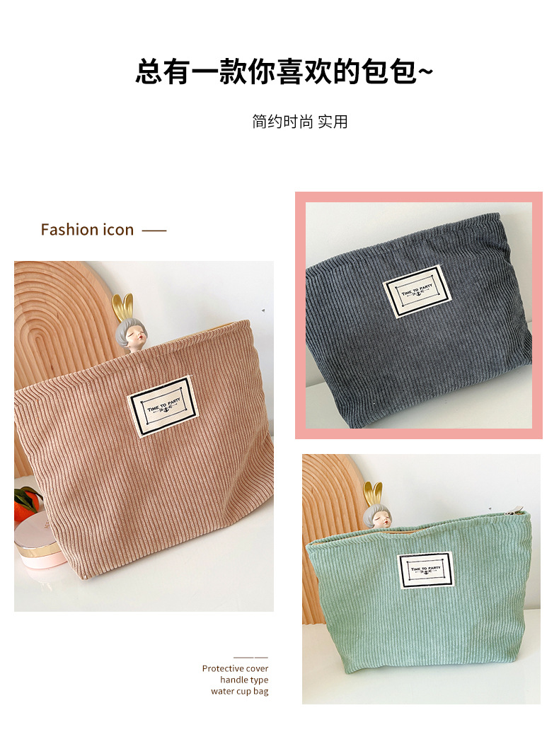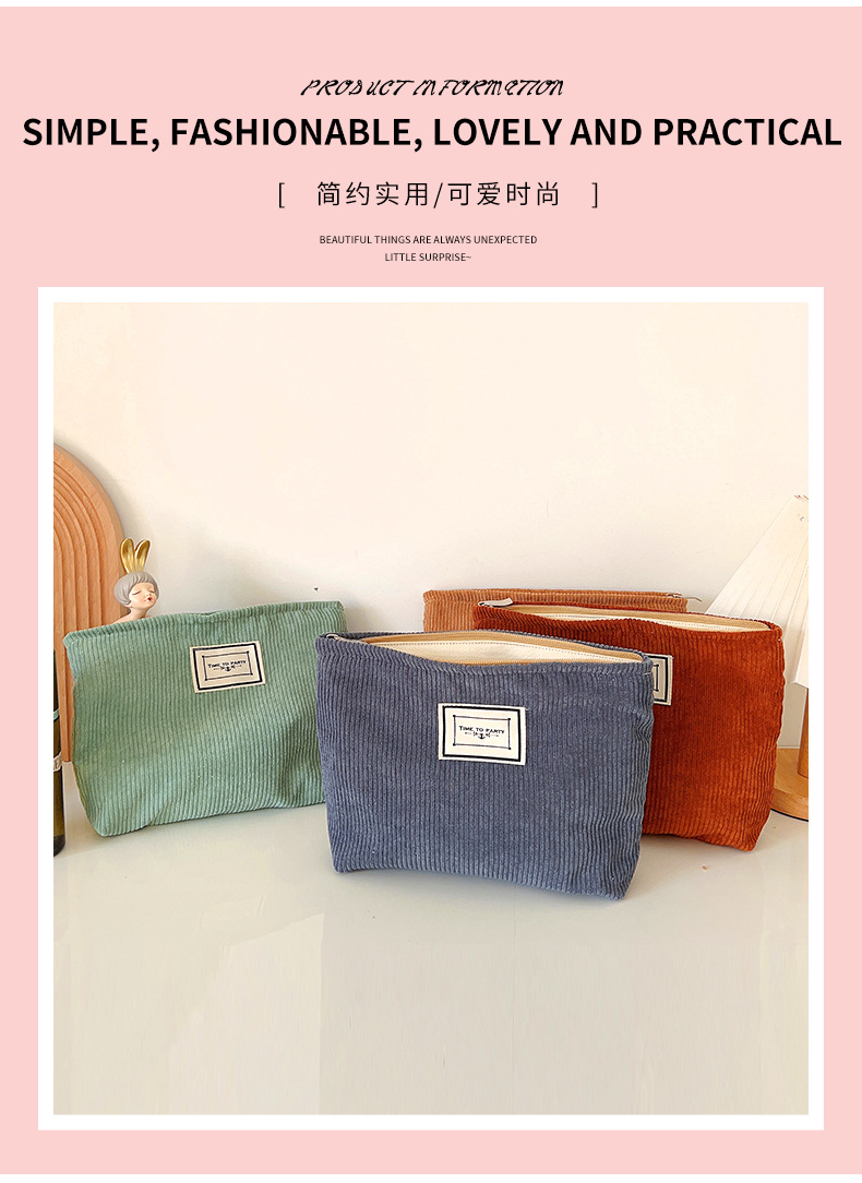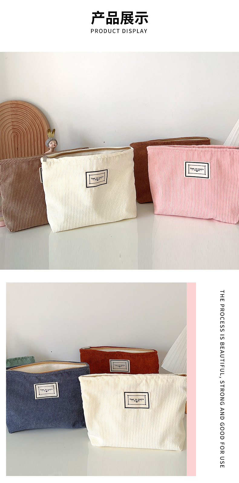 솔리드 컬러 간단한 코듀로이 화장품 가방 여행 휴대용 운반 클러치 지갑 지퍼 세면 용품 보관 가방스토어 가기