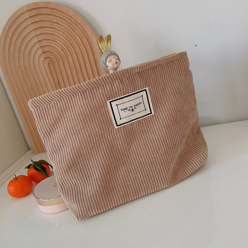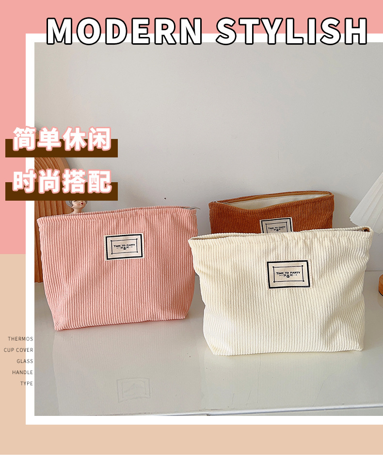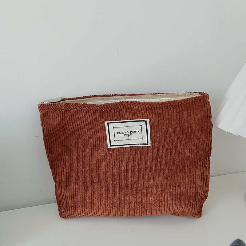 솔리드 컬러 간단한 코듀로이 화장품 가방 여행 휴대용 운반 클러치 지갑 지퍼 세면 용품 보관 가방