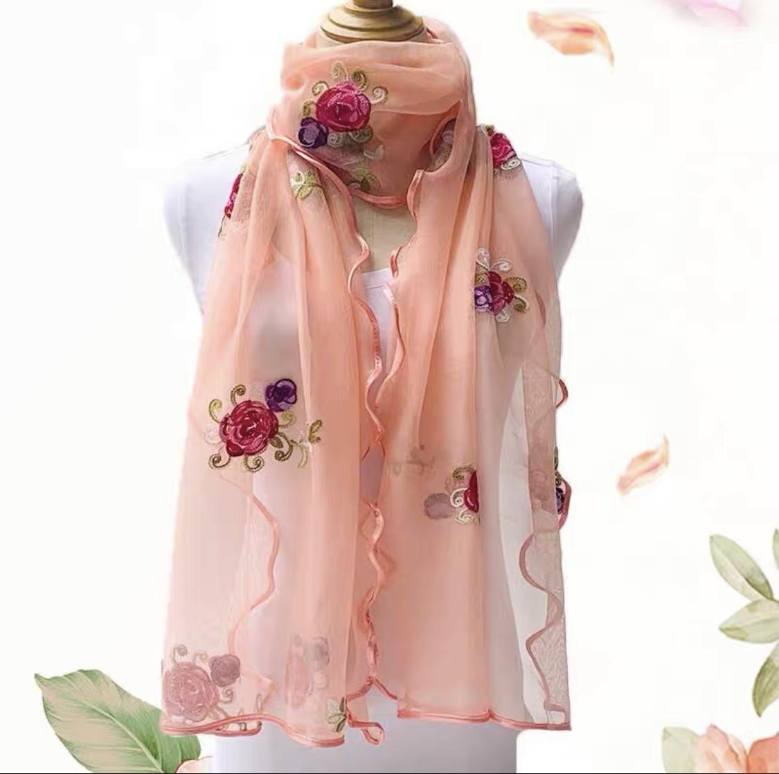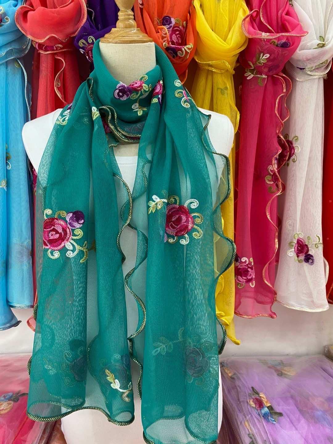 봄과 가을 여름 골든 로즈 자수 실크 스카프 여성용 긴 더블 레이어 뷰티 원사 숄 레이스 모든 매치 스카프스토어 가기