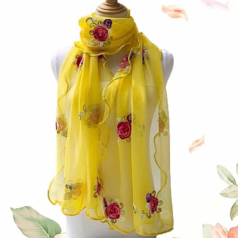 봄과 가을 여름 골든 로즈 자수 실크 스카프 여성용 긴 더블 레이어 뷰티 원사 숄 레이스 모든 매치 스카프