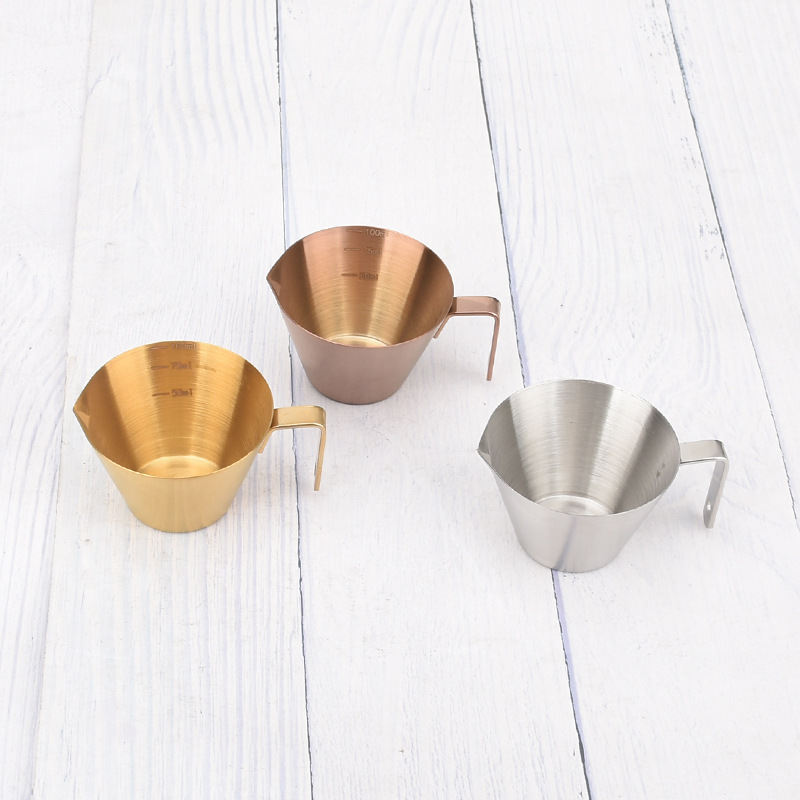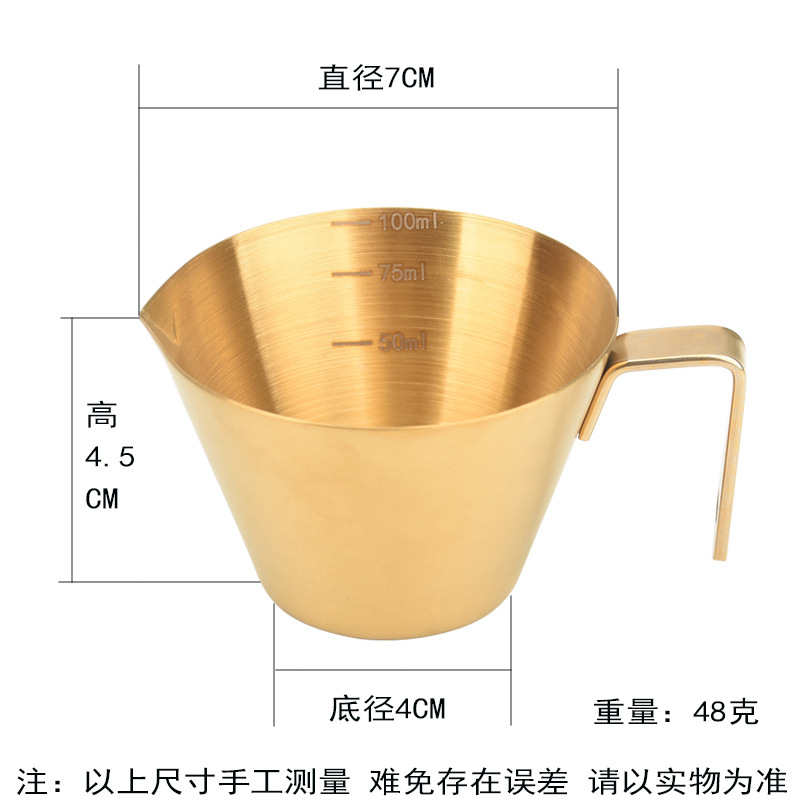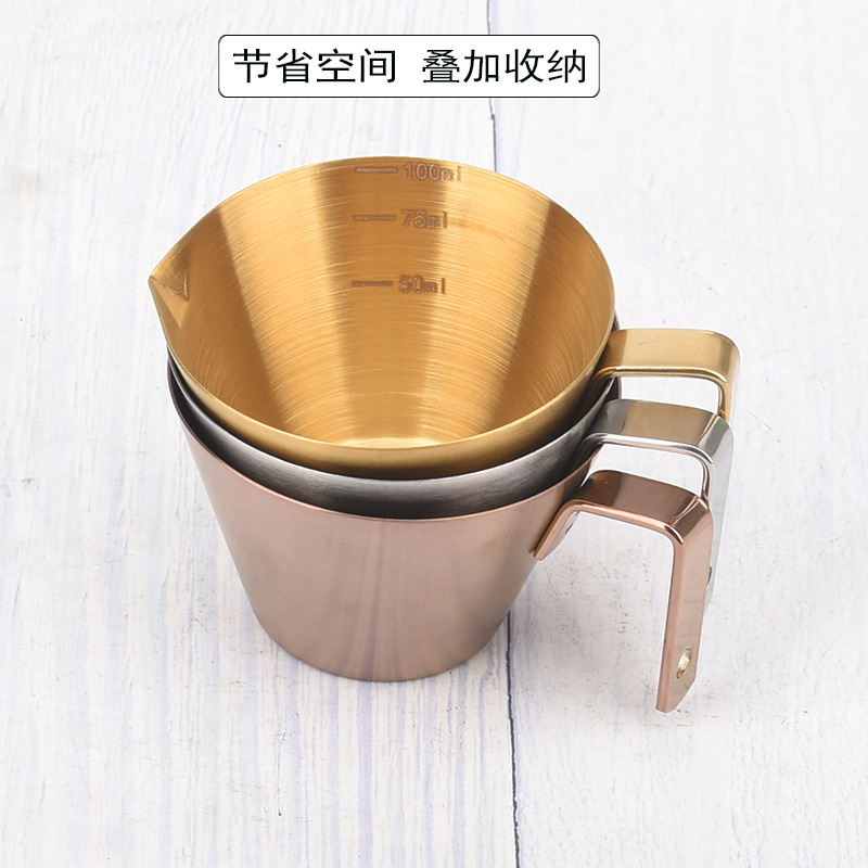 이탈리아 커피 추출 컵 100ml 온스 측정 컵 스케일 폭격기 액체 컵 손잡이 304 스테인레스 스틸