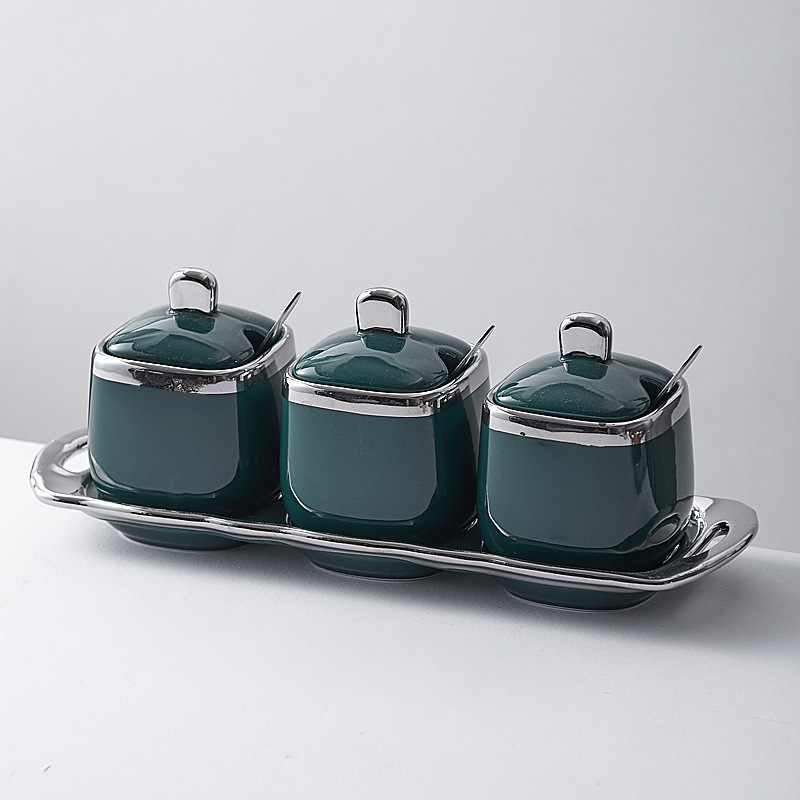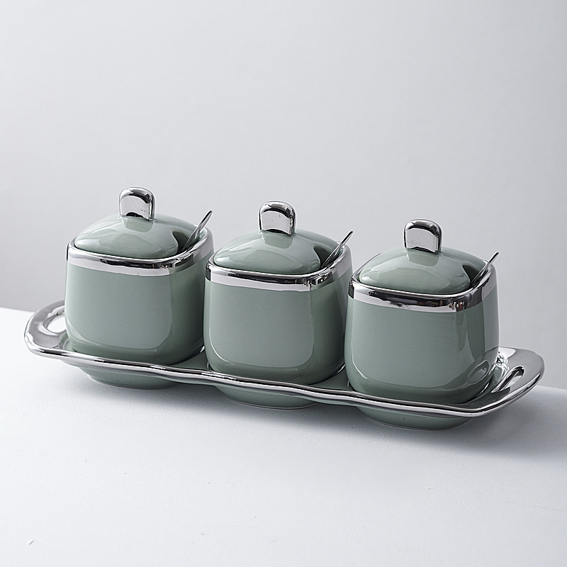 조미료 상자 주방 가정용 북유럽 빛 고급 세라믹 조미료 항아리 조미료 항아리 소금 민트 항아리 높은 색상 값 조합 세트