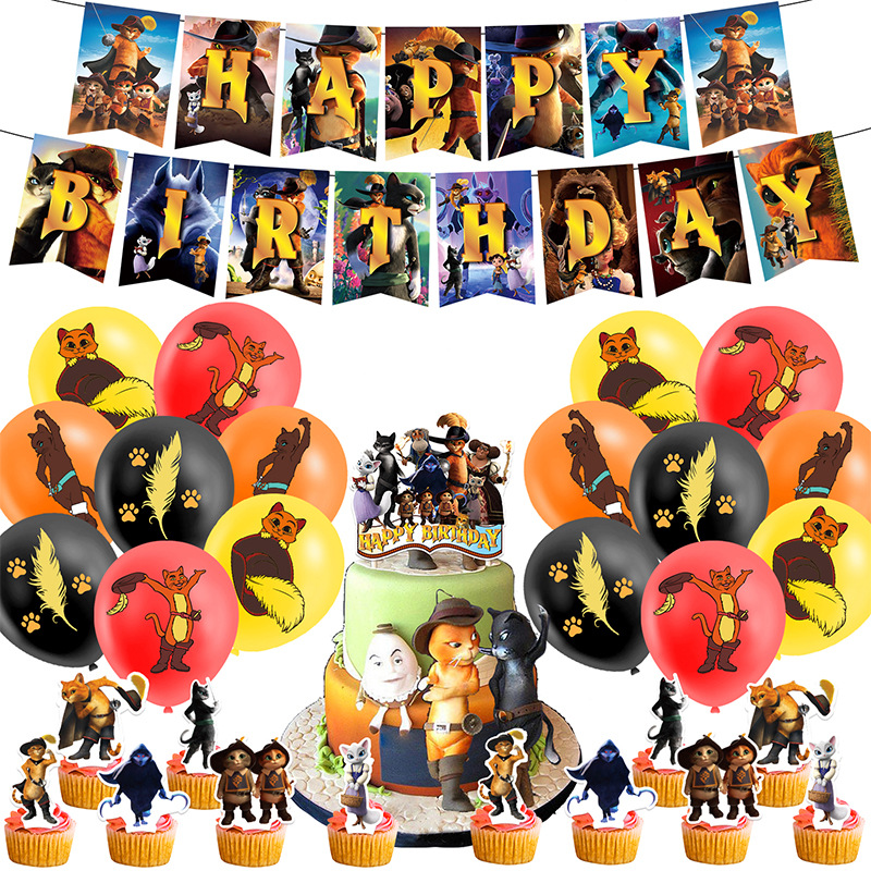 1条穿靴子的猫生日拉旗