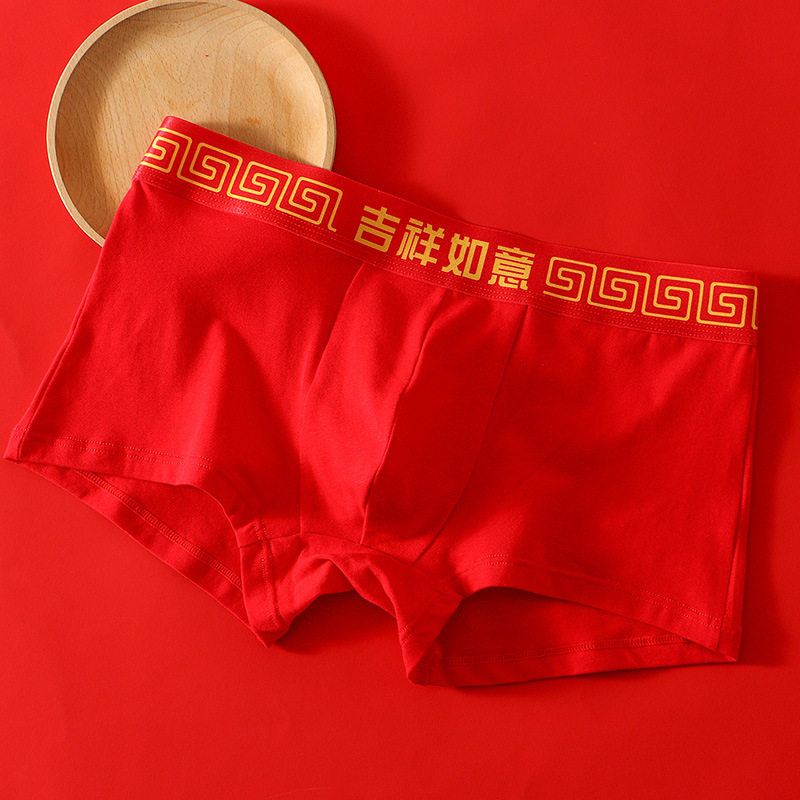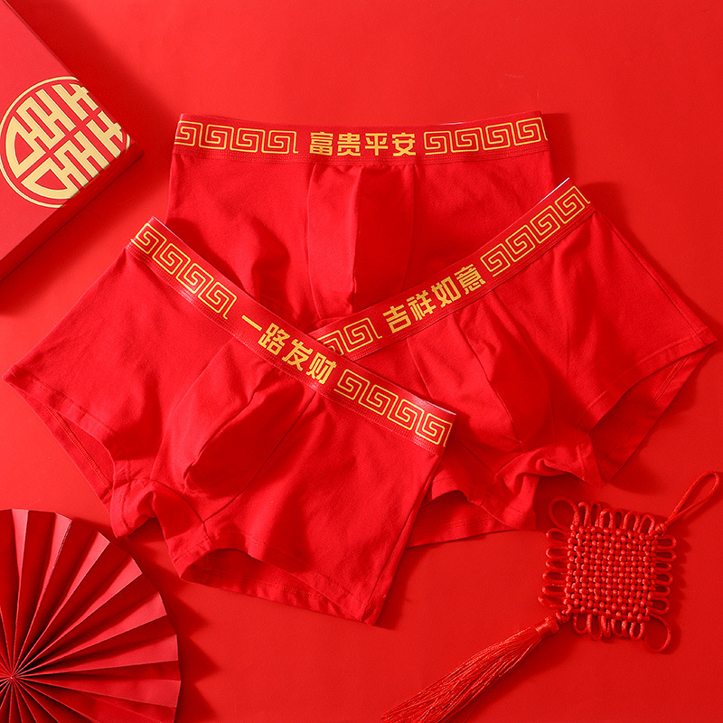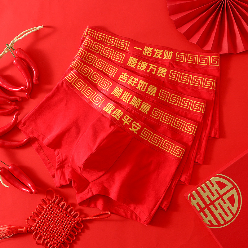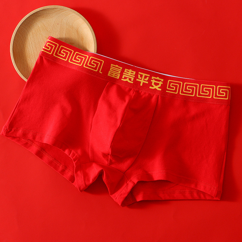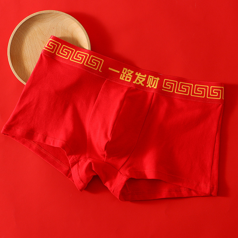 Bermingnian 남자의 속옷 사각 순면 축제 결혼식 빨간 속옷 반바지 단색 플러스 사이즈 복서 바지
