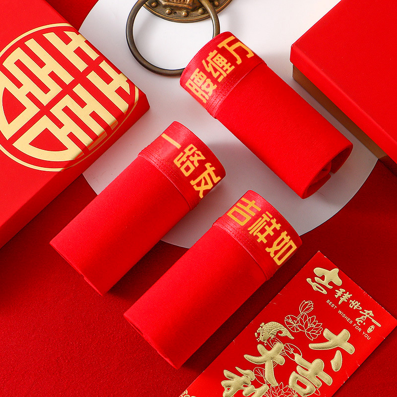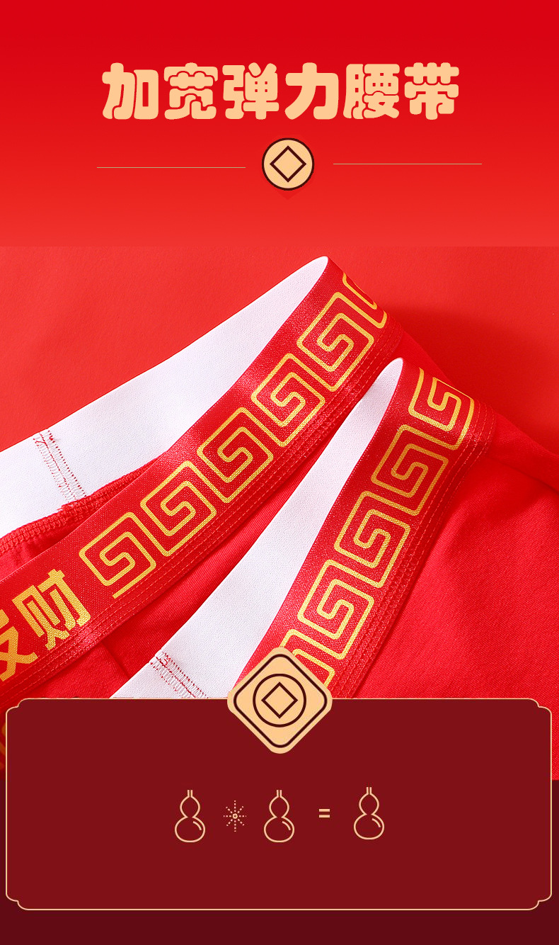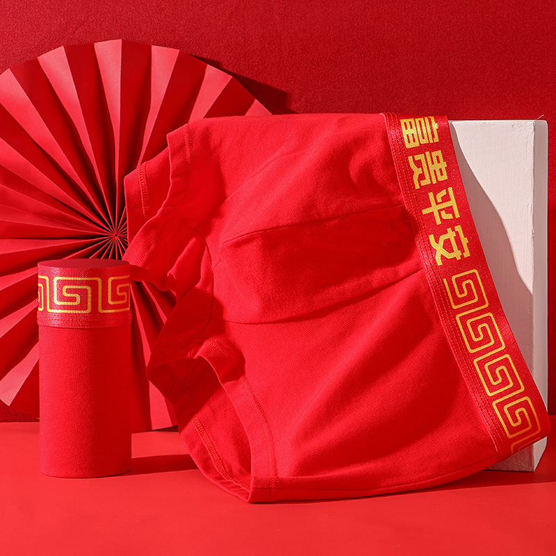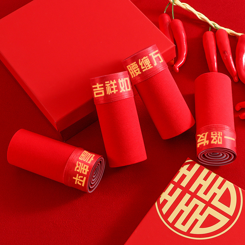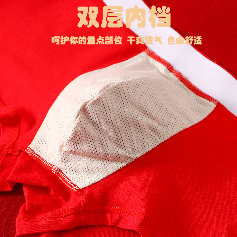 Bermingnian 남자의 속옷 사각 순면 축제 결혼식 빨간 속옷 반바지 단색 플러스 사이즈 복서 바지