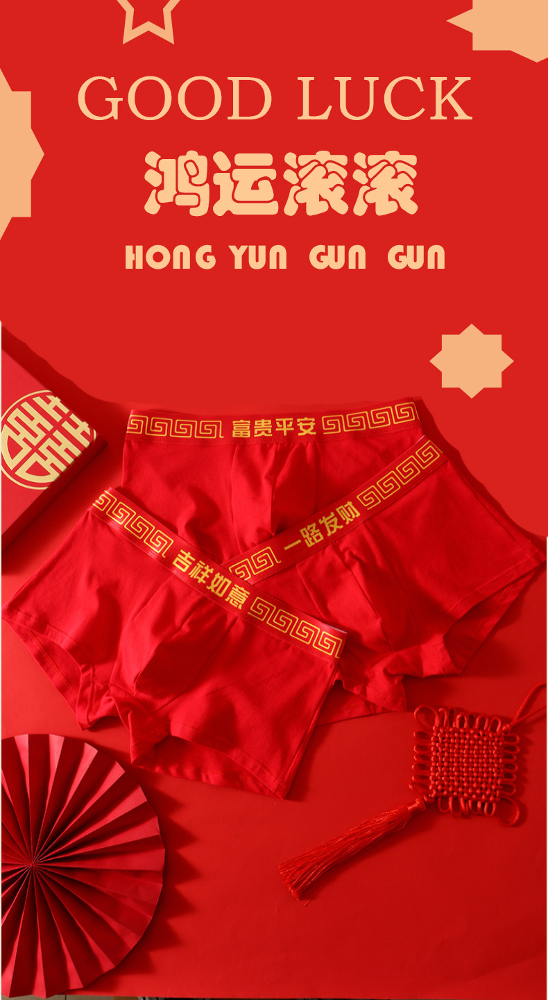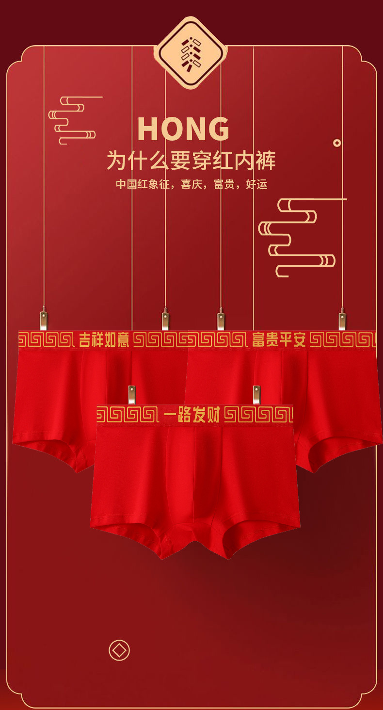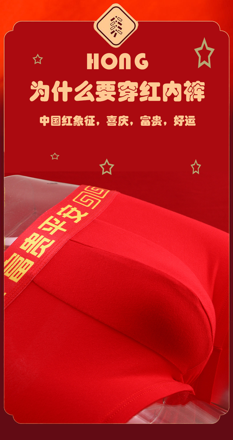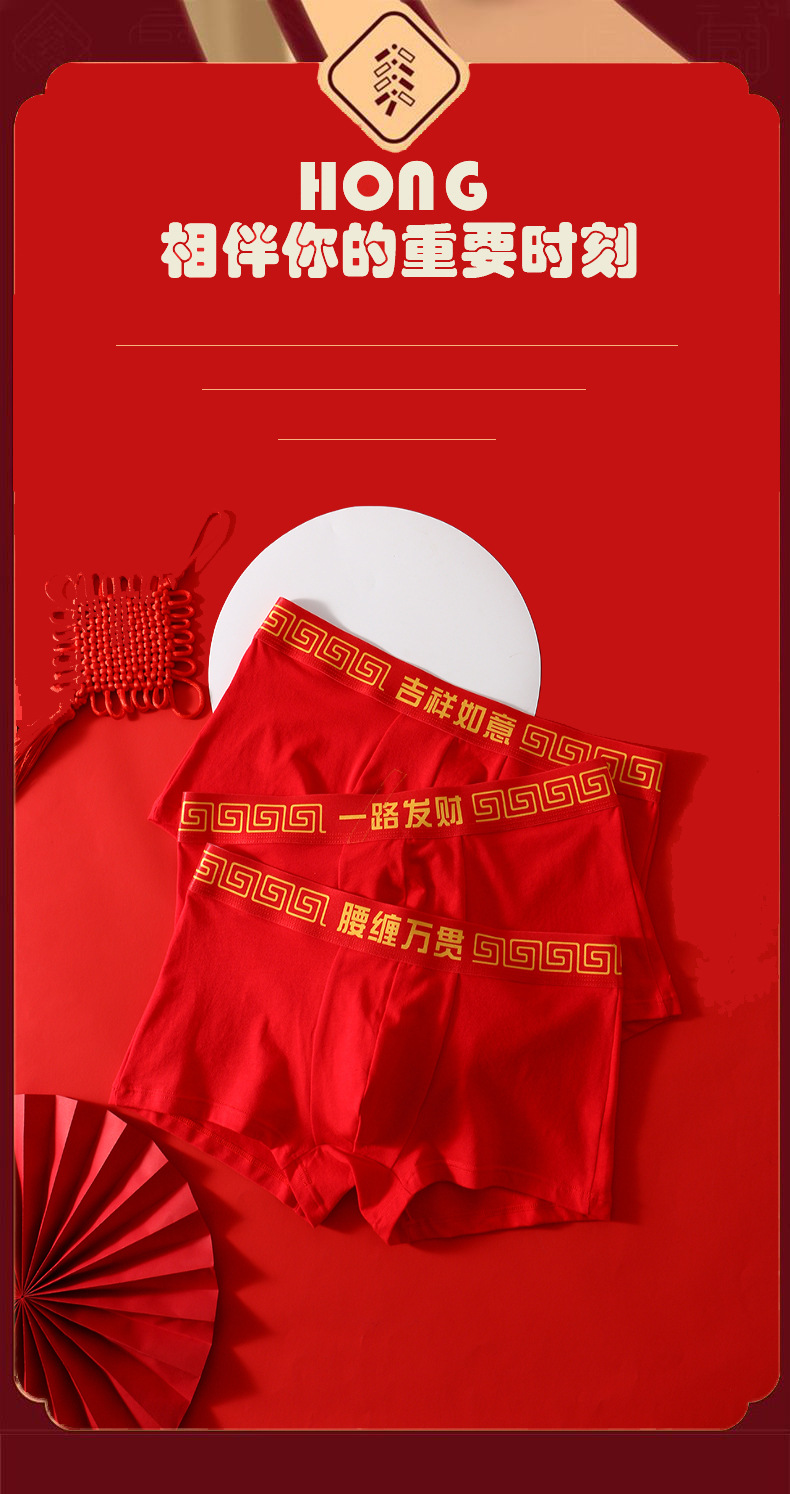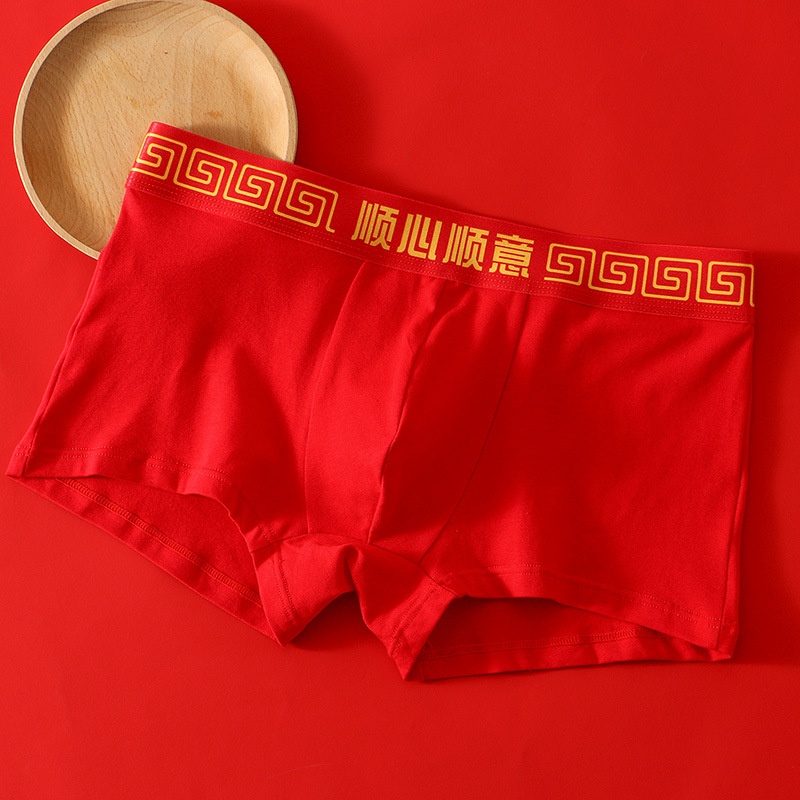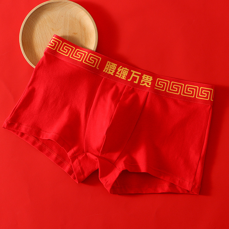 Bermingnian 남자의 속옷 사각 순면 축제 결혼식 빨간 속옷 반바지 단색 플러스 사이즈 복서 바지스토어 가기