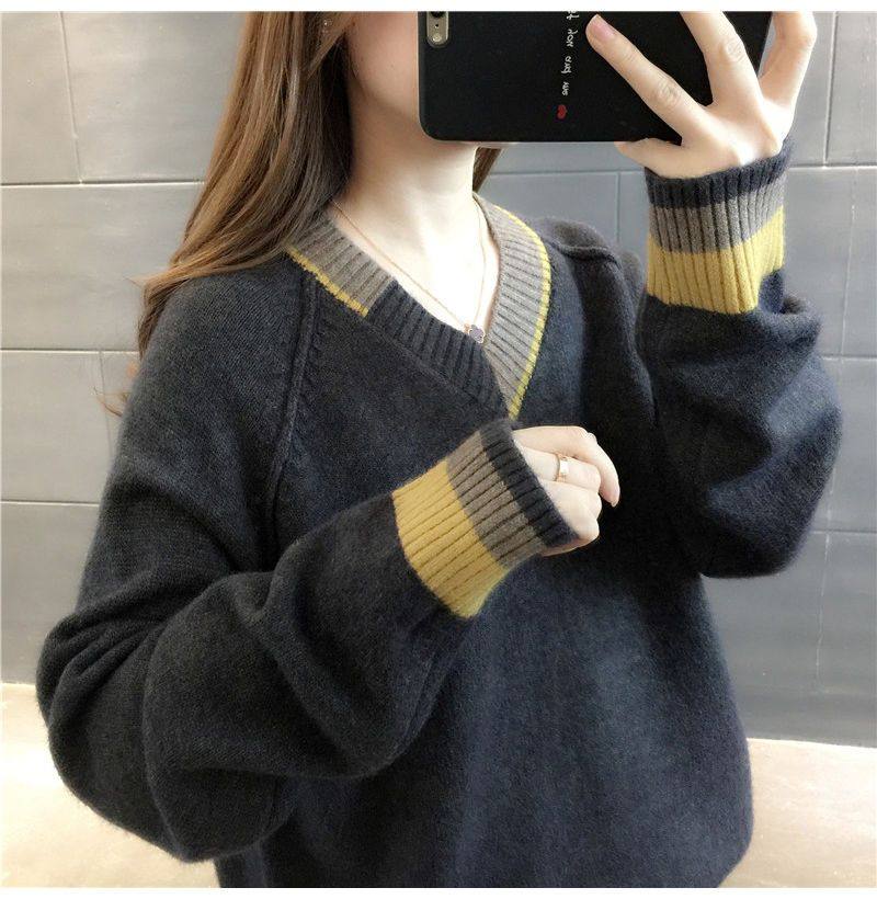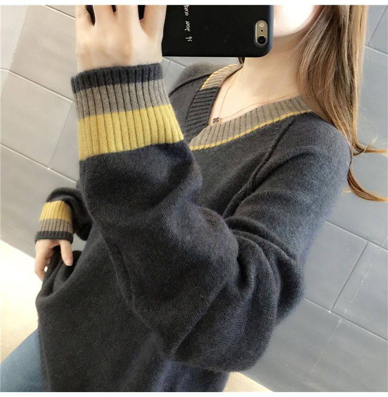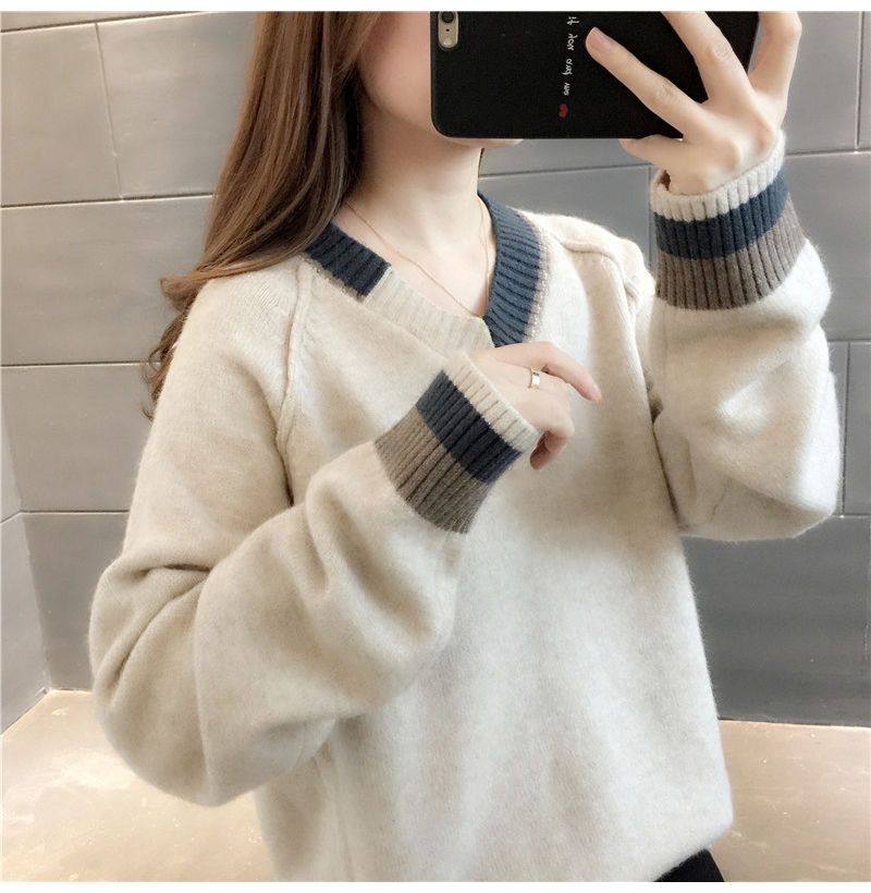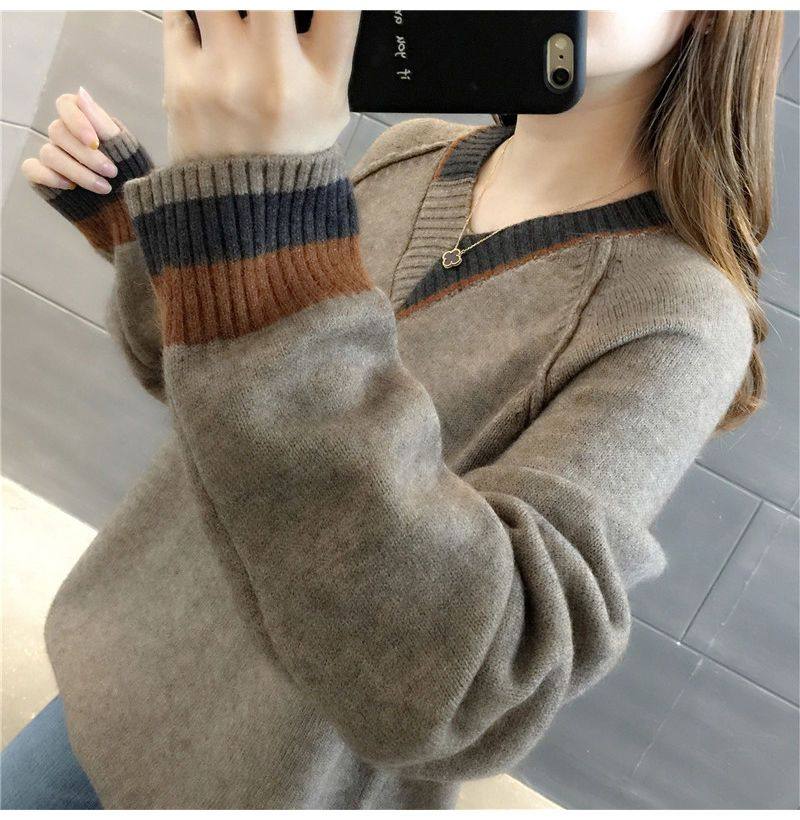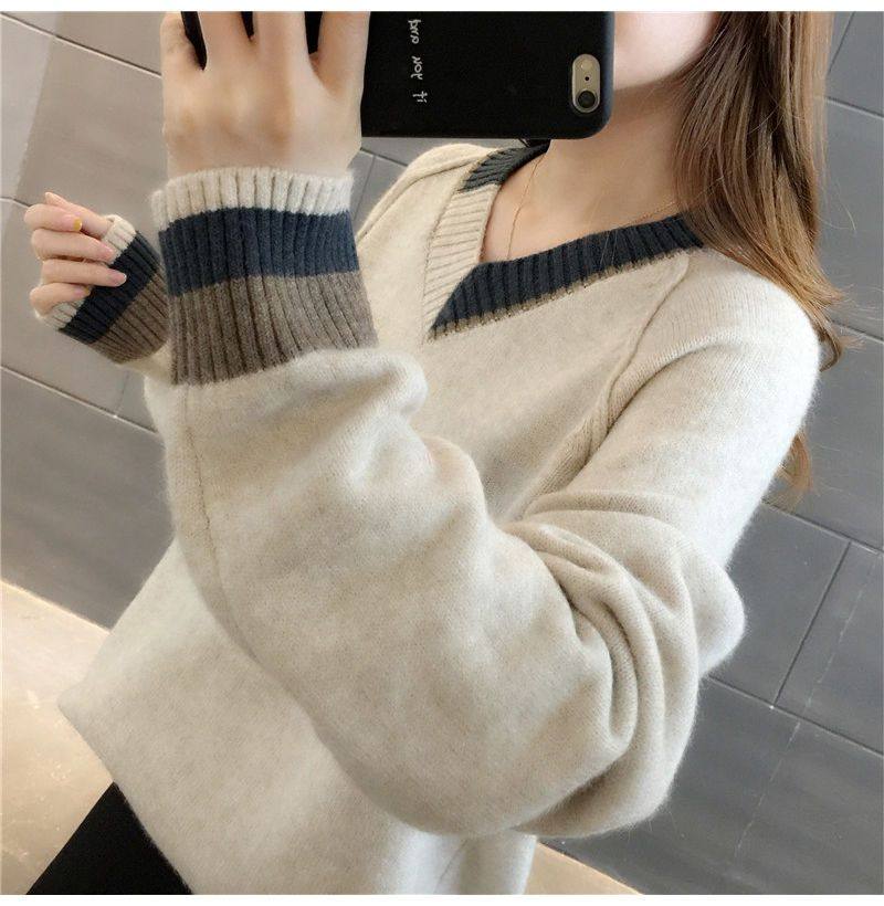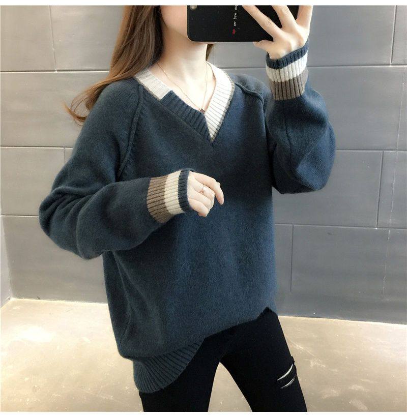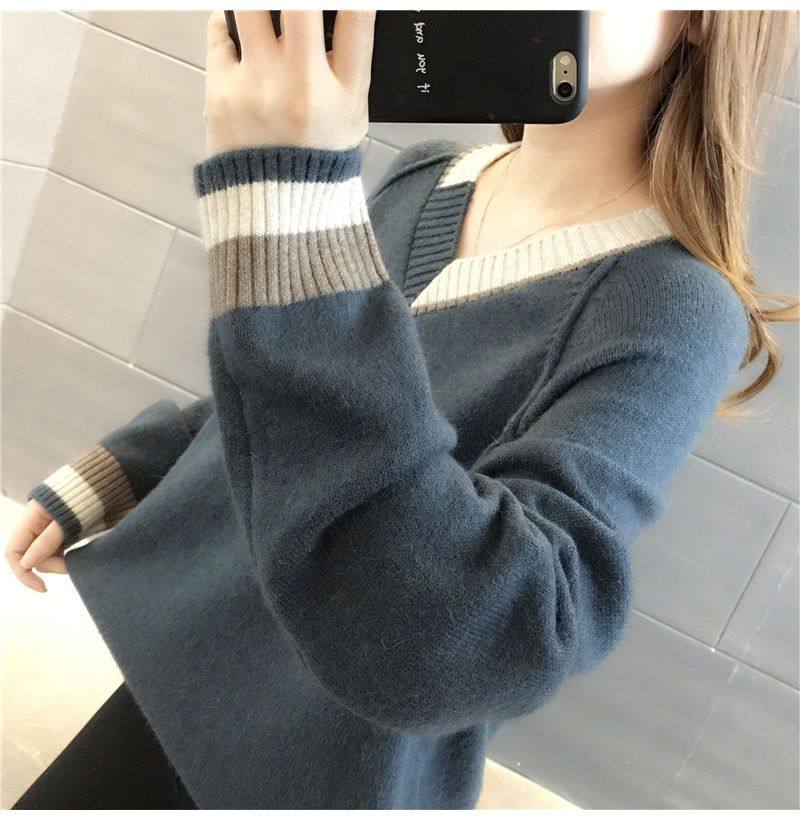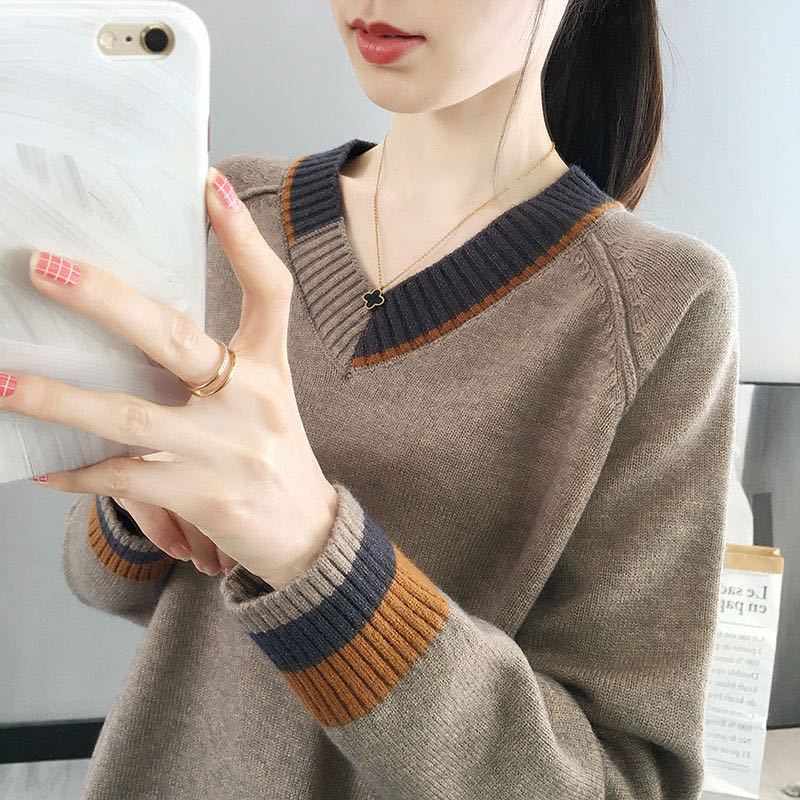 여성용 스웨터 2024년 신상 가을 겨울 루즈핏 슬림 브이넥 패셔너블 이너웨어 숏탑 니트 베이스 셔츠스토어 가기