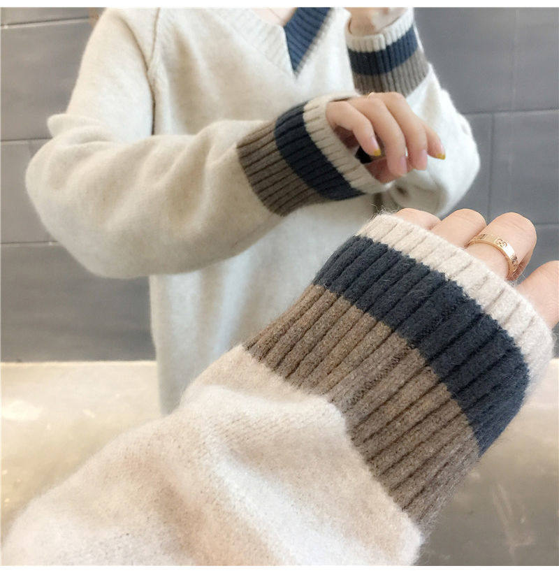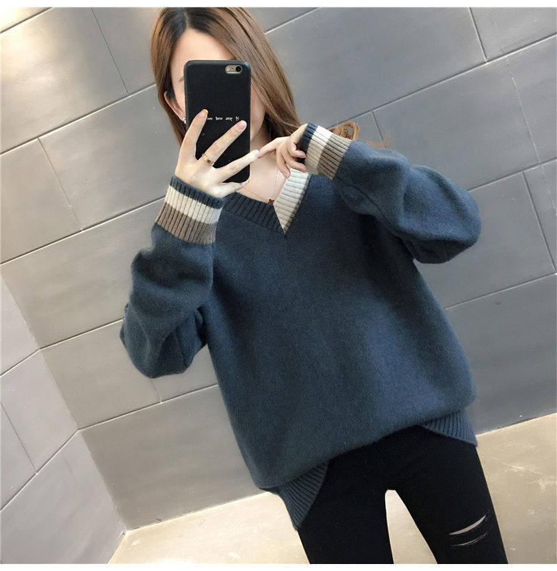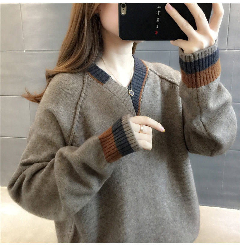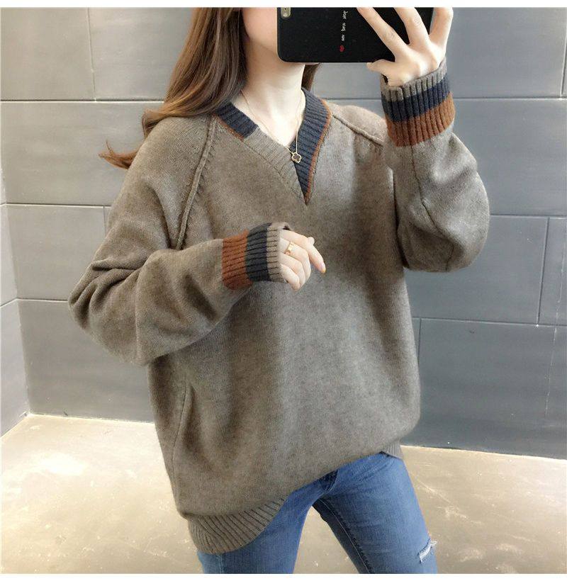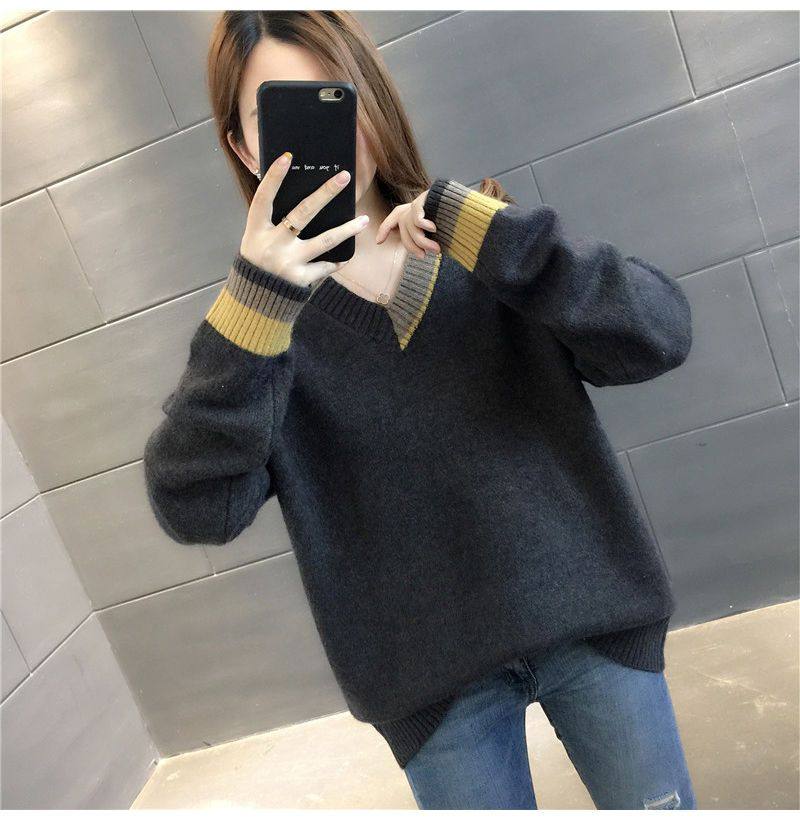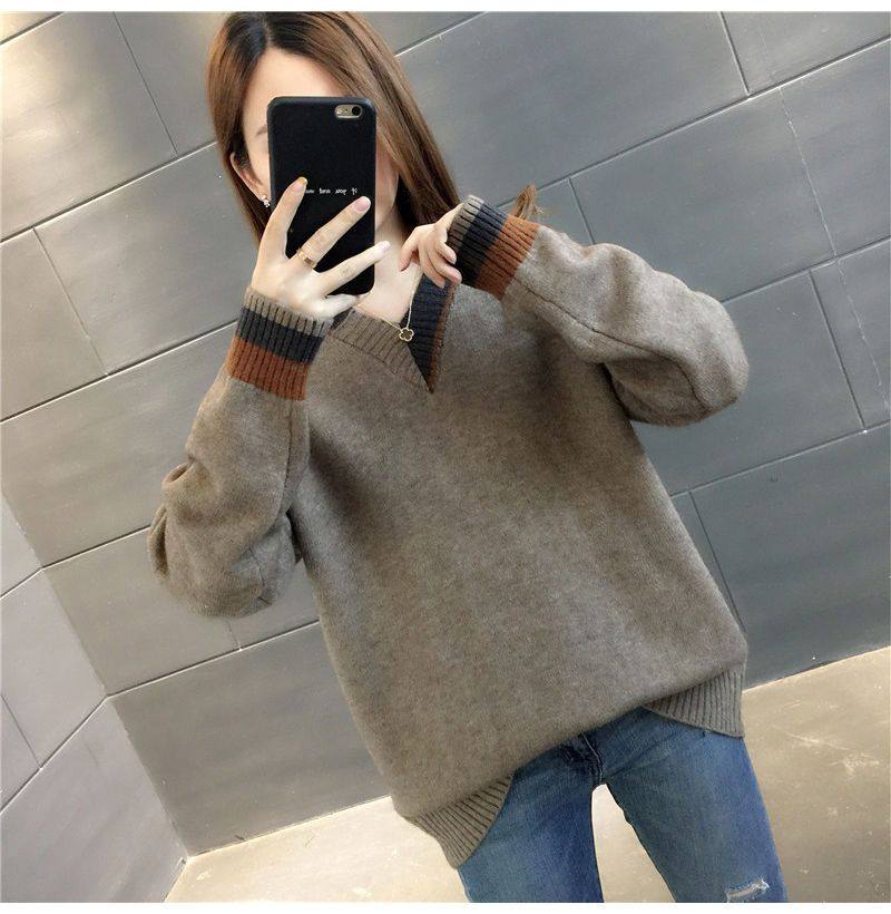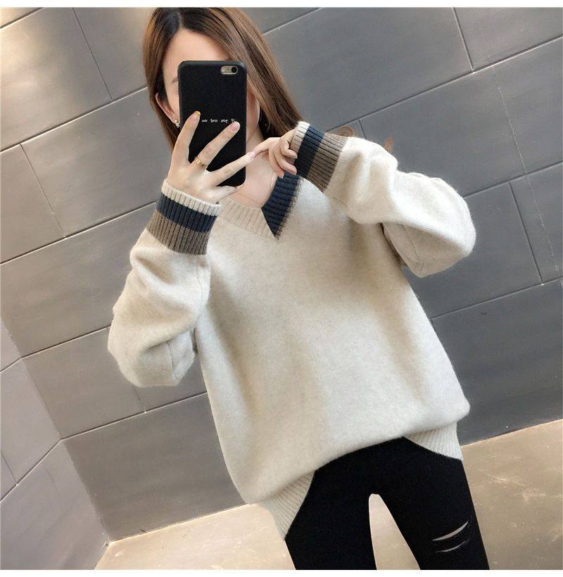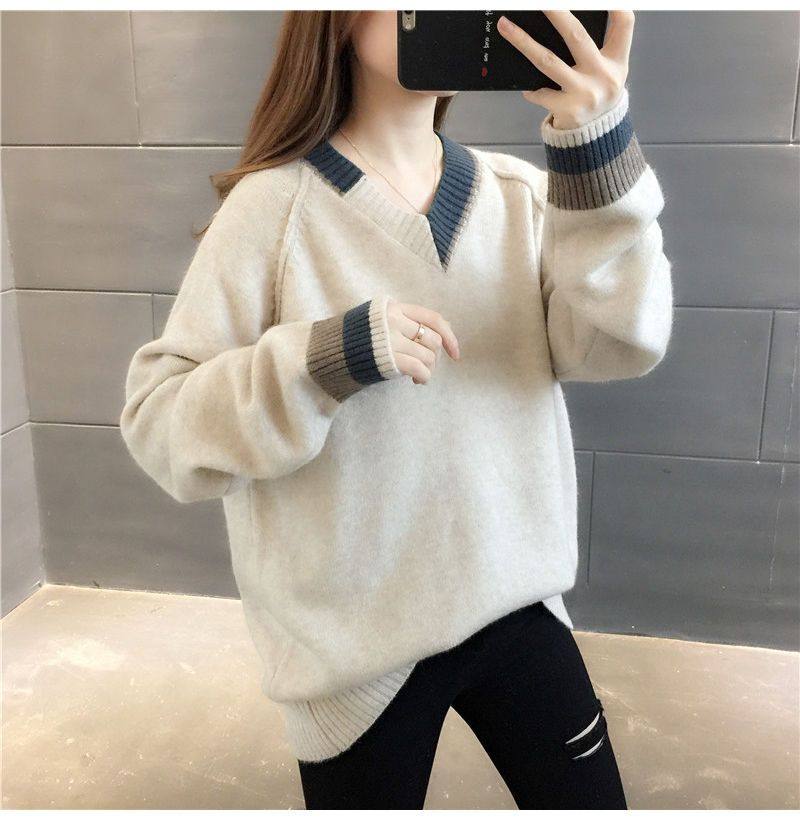 여성용 스웨터 2024년 신상 가을 겨울 루즈핏 슬림 브이넥 패셔너블 이너웨어 숏탑 니트 베이스 셔츠스토어 가기