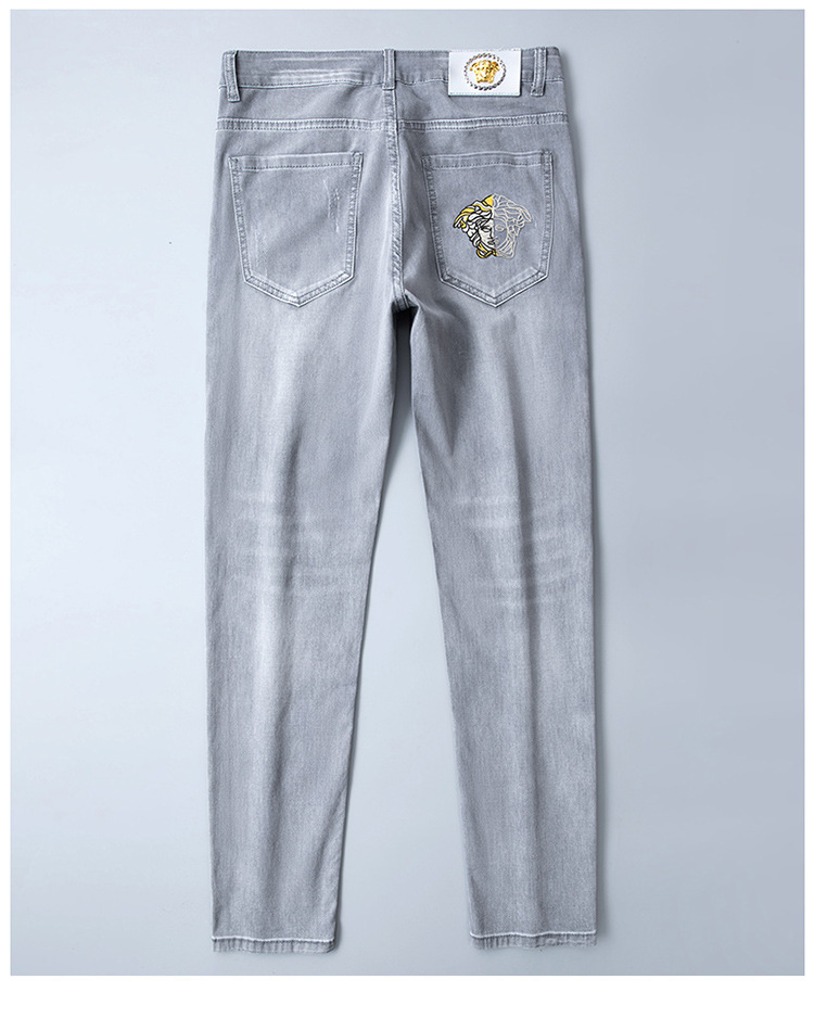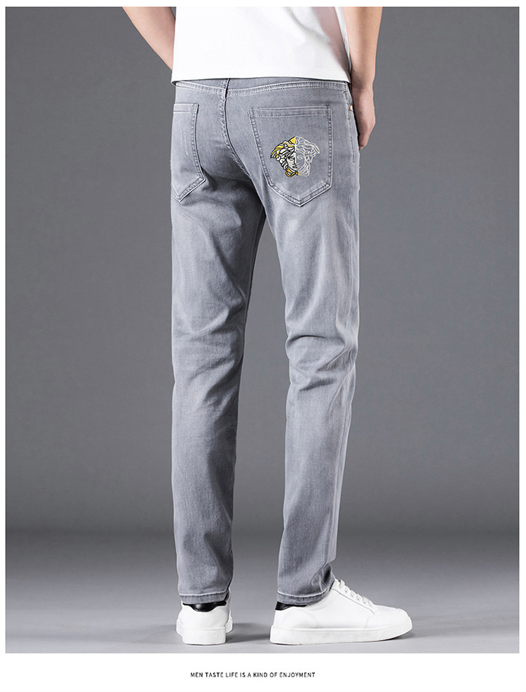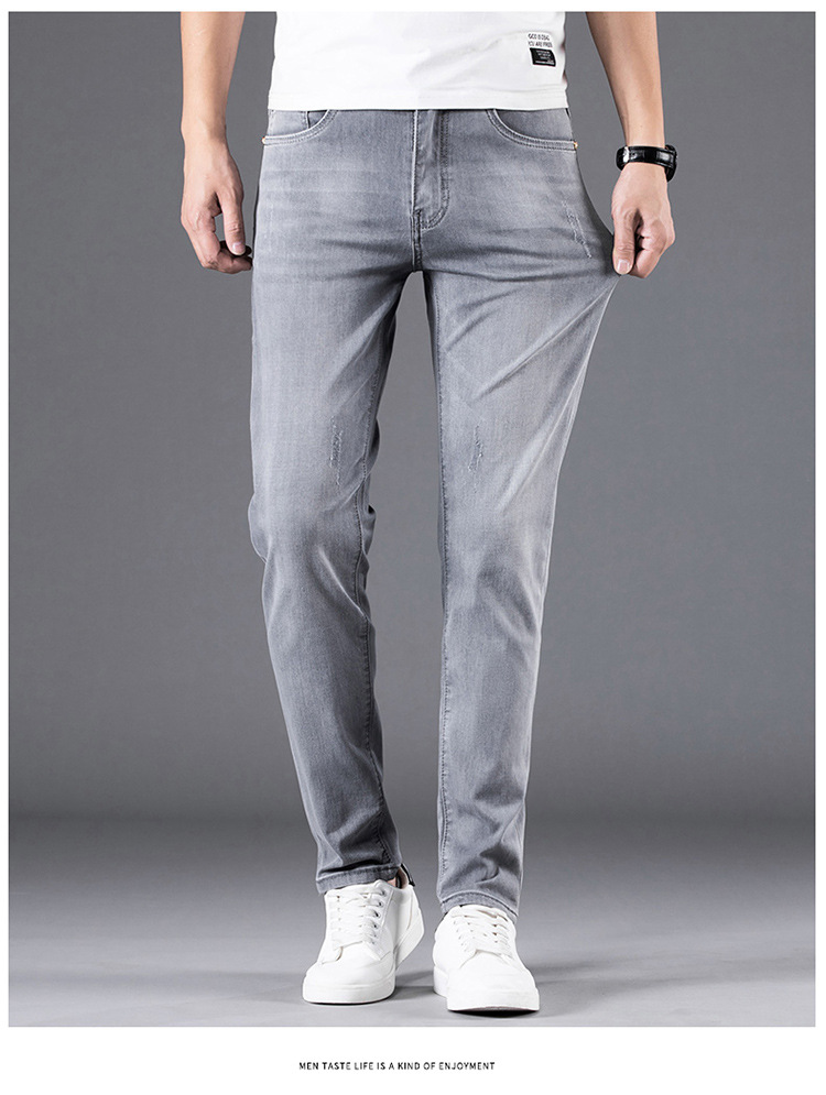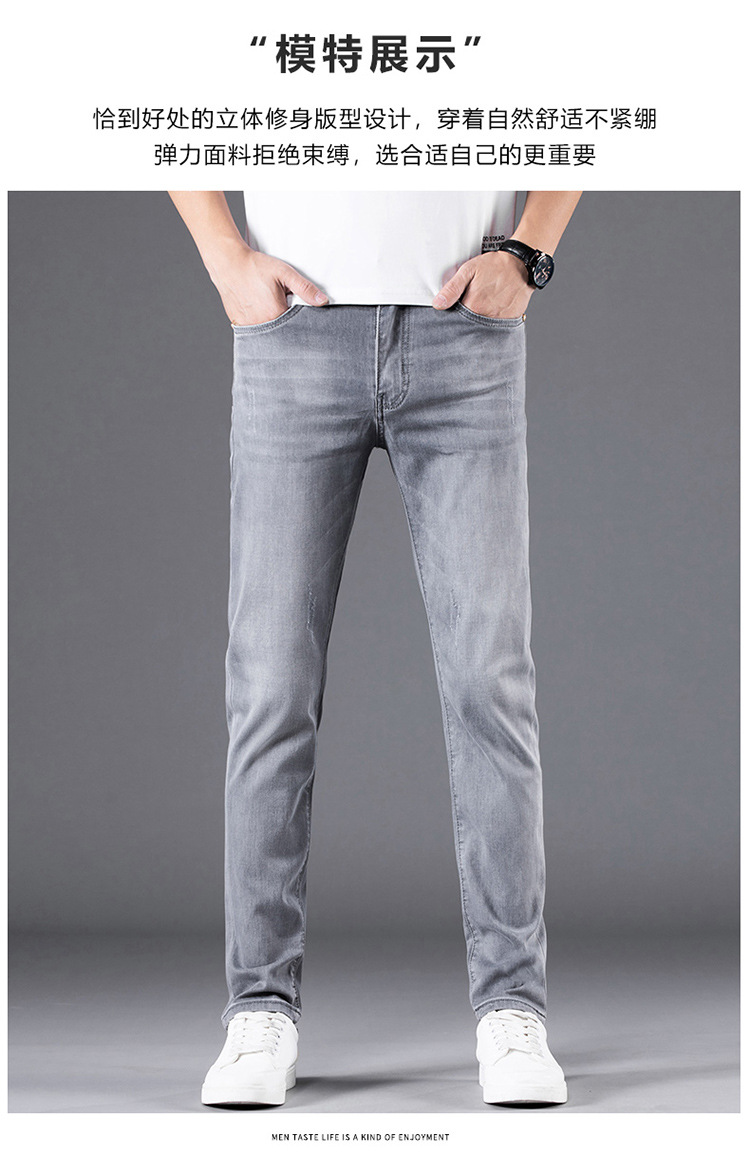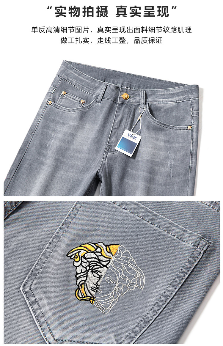 같은 패션 브랜드의 라이브 방송 봄과 여름 자수 청바지 남자의 2023 새로운 라이트 그레이 스트레치 슬림 바지 대신스토어 가기