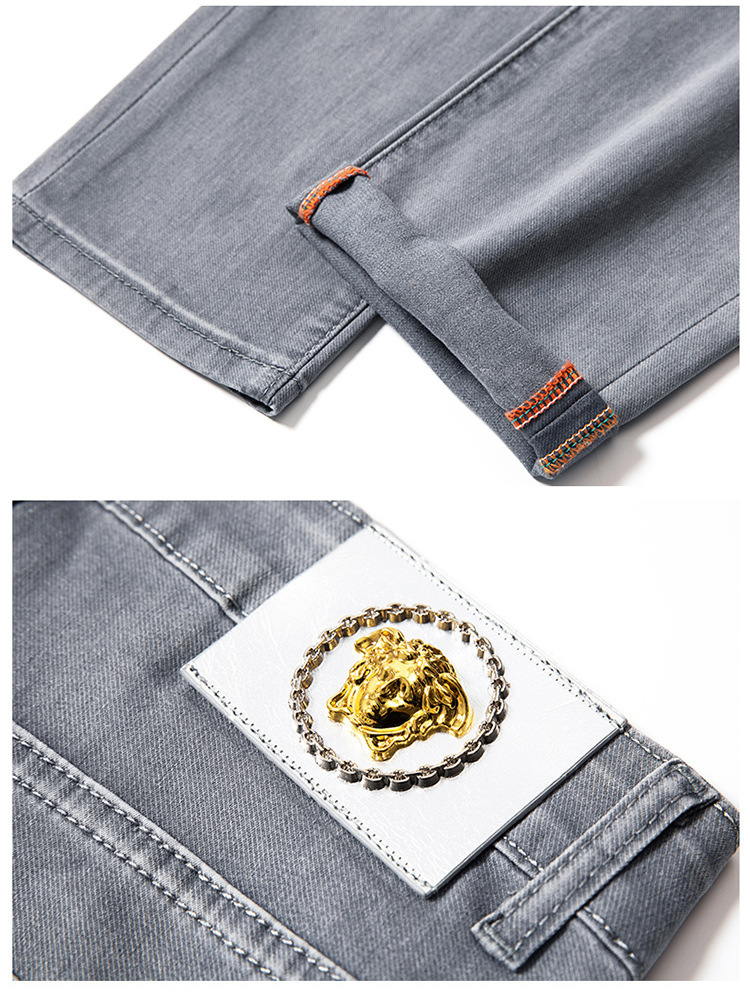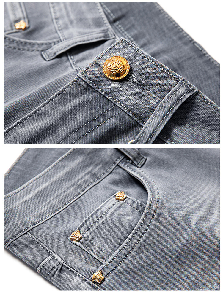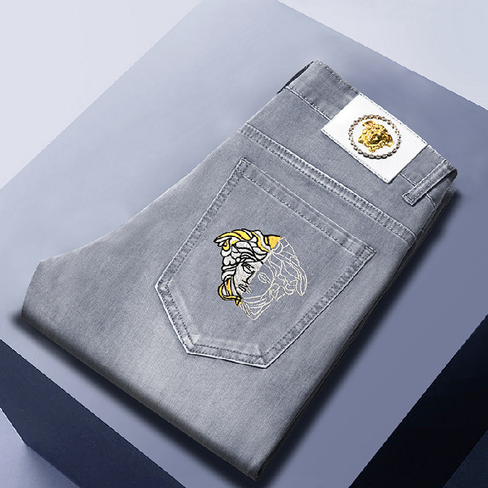 같은 패션 브랜드의 라이브 방송 봄과 여름 자수 청바지 남자의 2023 새로운 라이트 그레이 스트레치 슬림 바지 대신