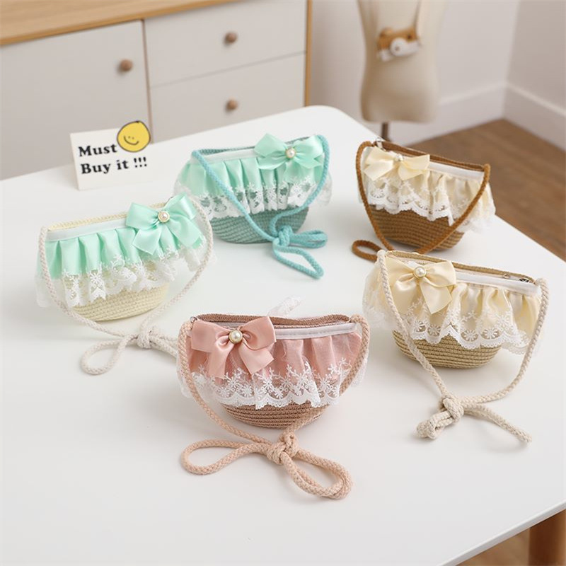 새로운 어린이 밀짚 모자 나비 밀짚 가방 세트 여름 해변 자외선 차단제 한국 아기 패션 차양 모자