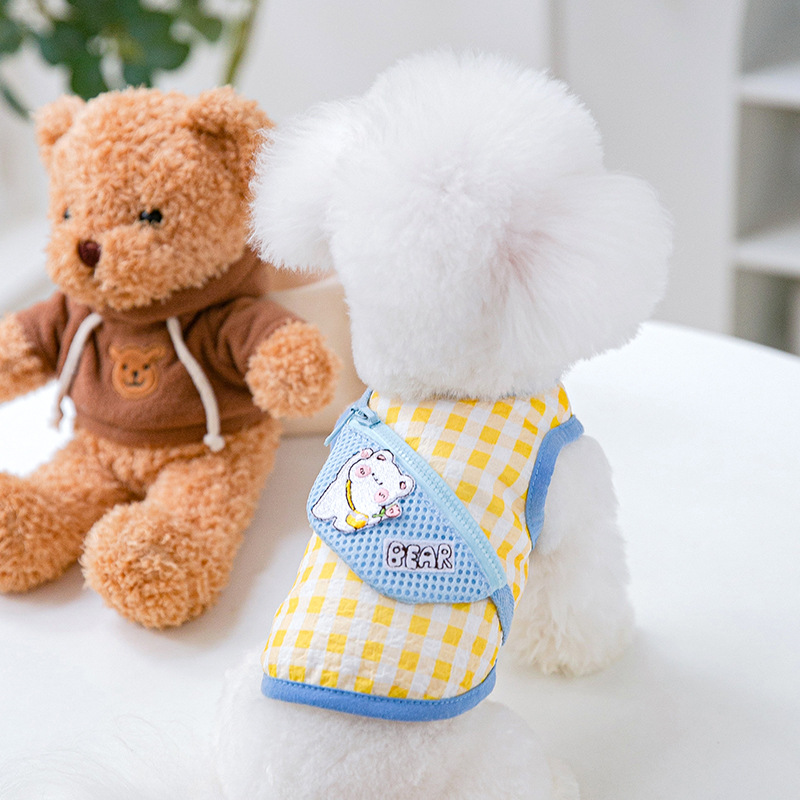 봄과 여름 개 옷 귀여운 작은 동물 가방 통기성 조끼 테디 베어 중소 개 애완 동물 의류