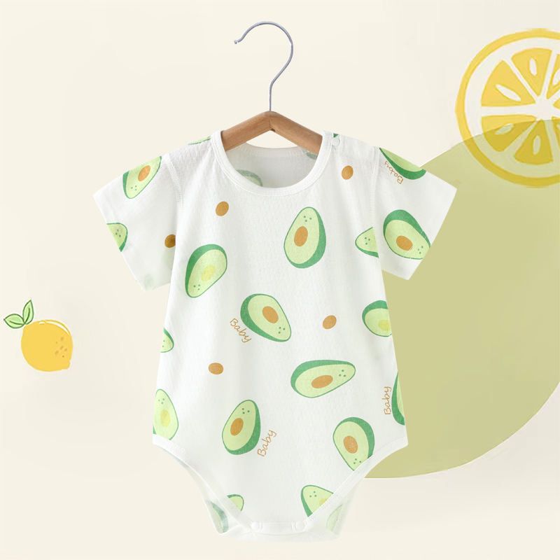 소스 공장 사용자 정의 아기 여름 얇은 가방 뚱뚱한 옷 신생아 반팔 토끼 옷 아기 여름 면 크롤링 옷