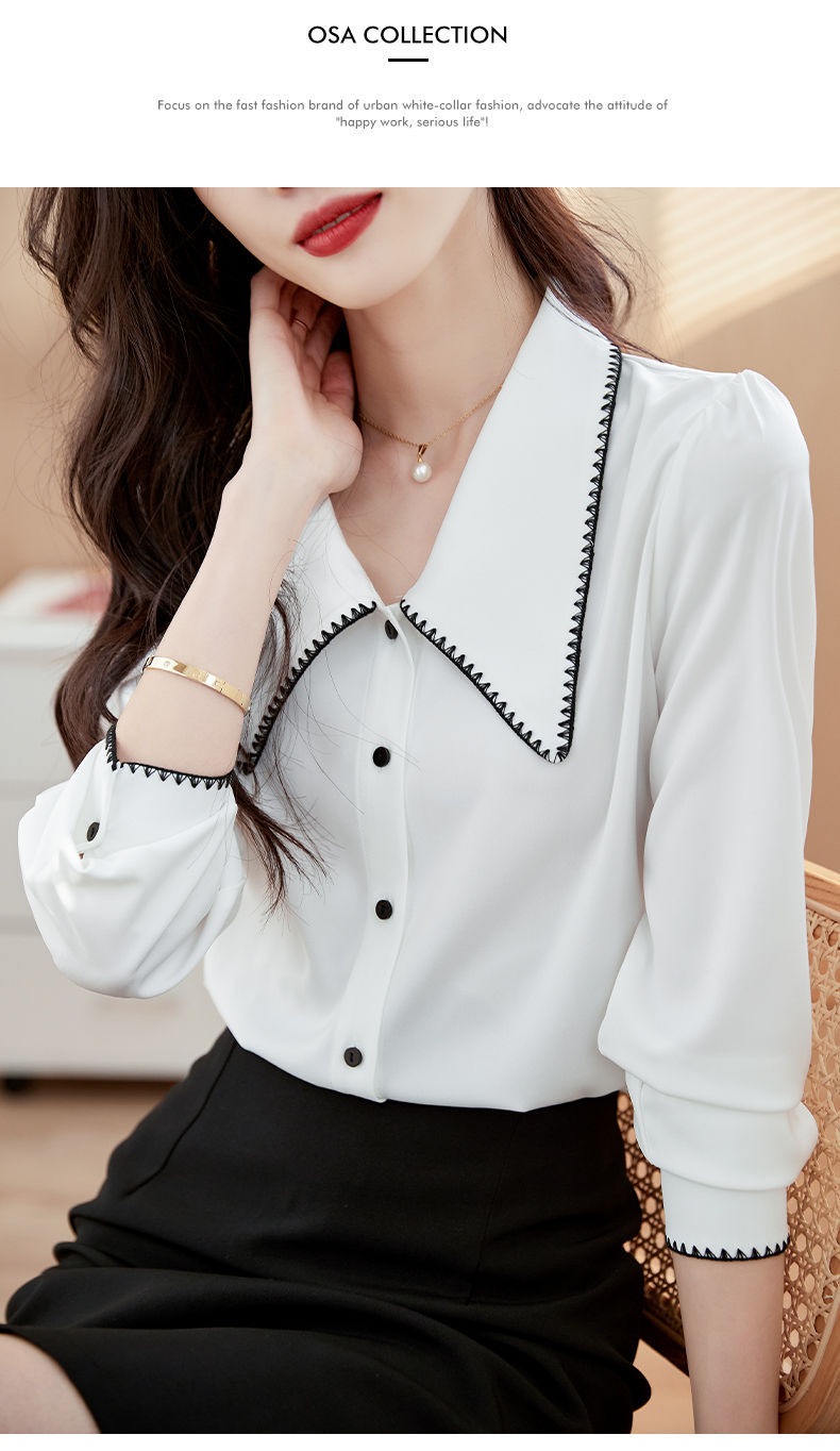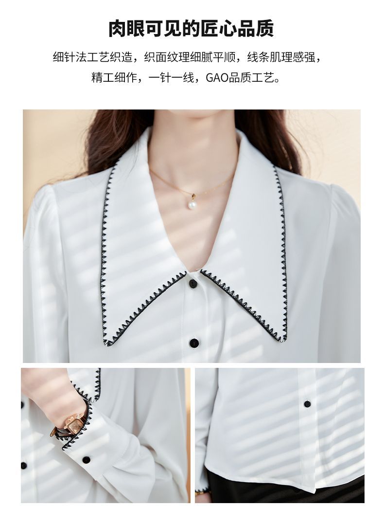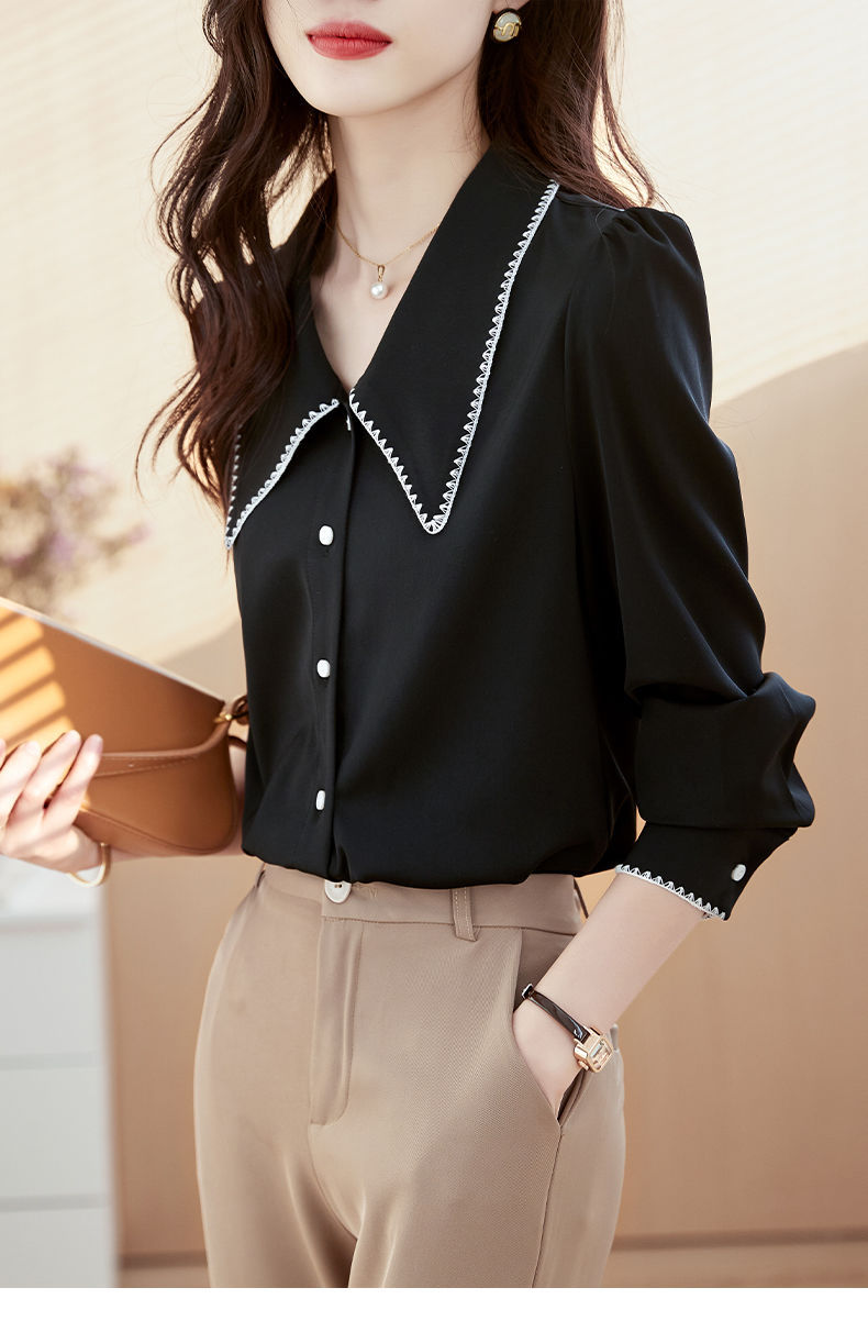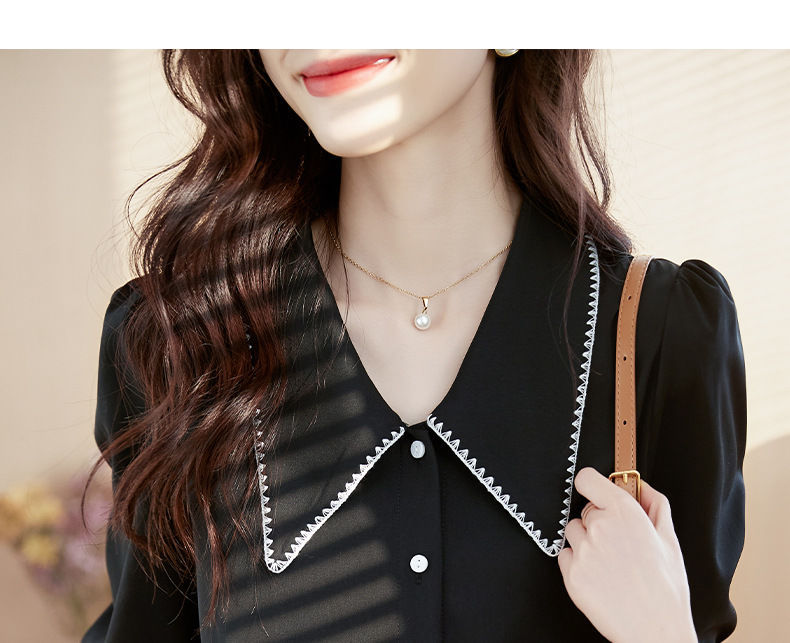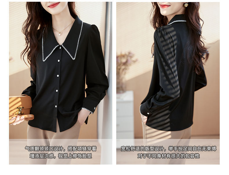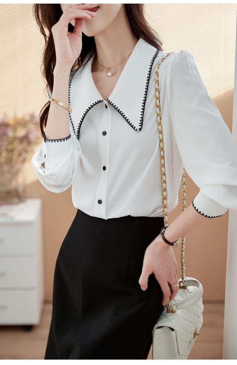 초봄 의류 2023 신상 긴팔 인형 칼라 쉬폰 셔츠 여성용 독특한 상의 예쁘고 세련된 단색 셔츠스토어 가기