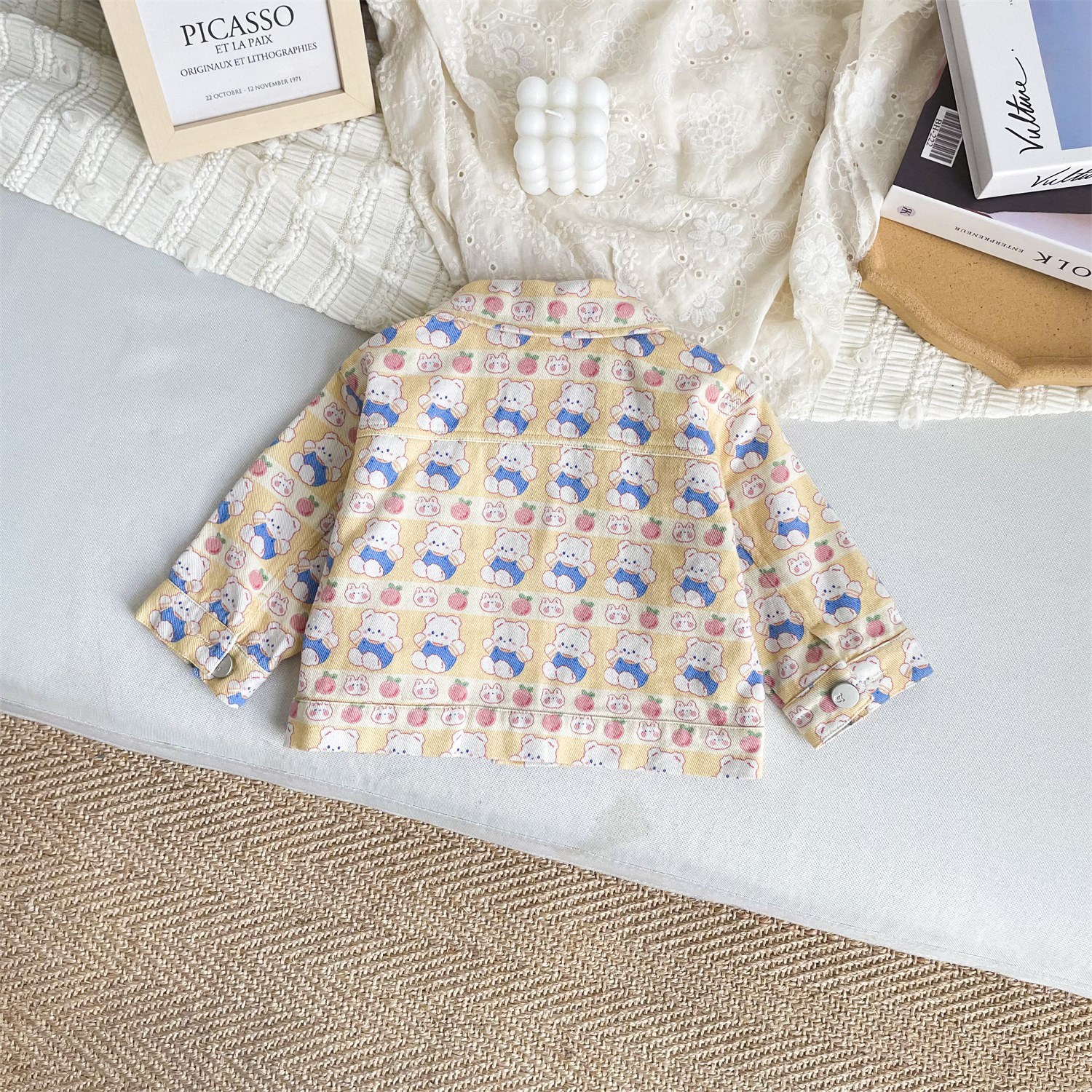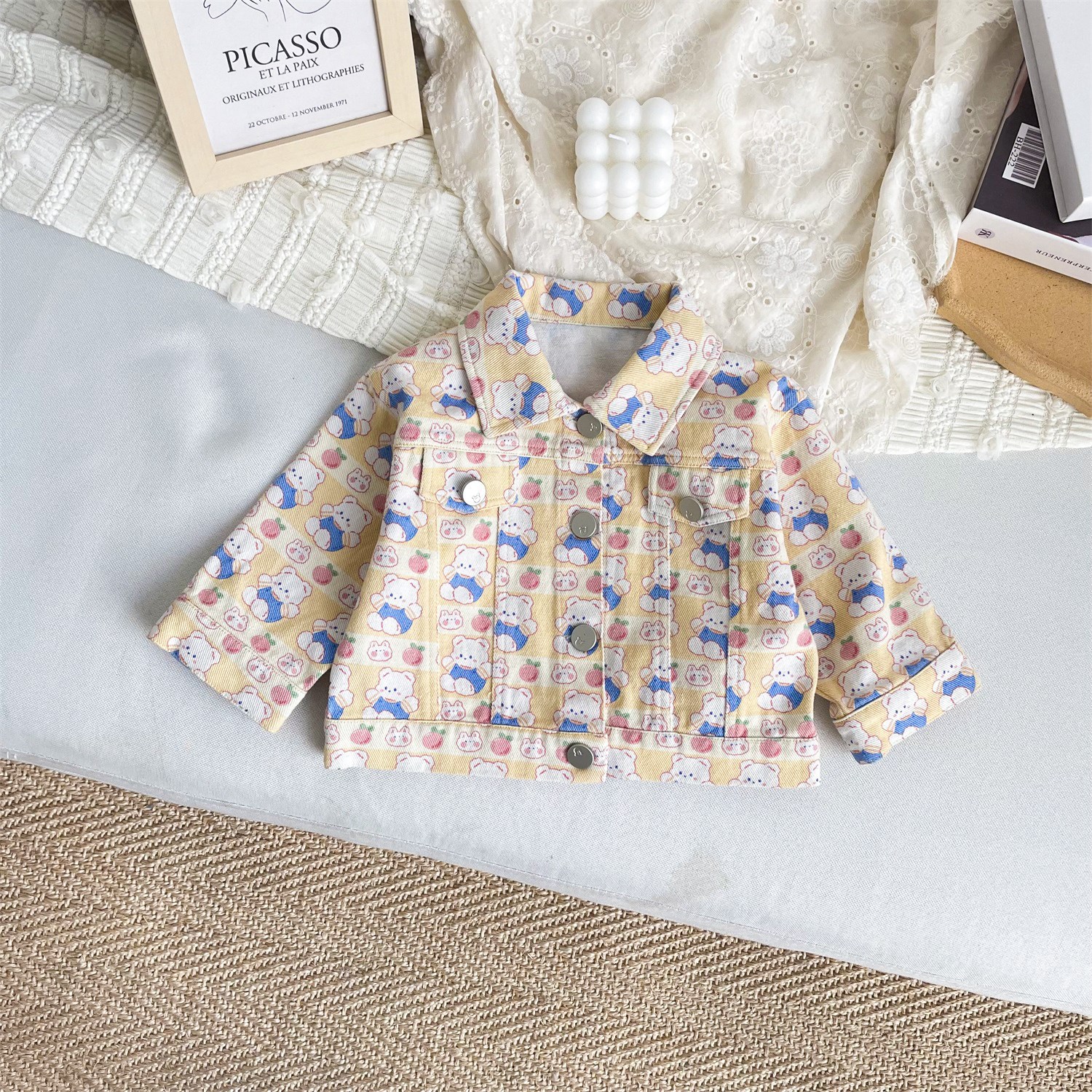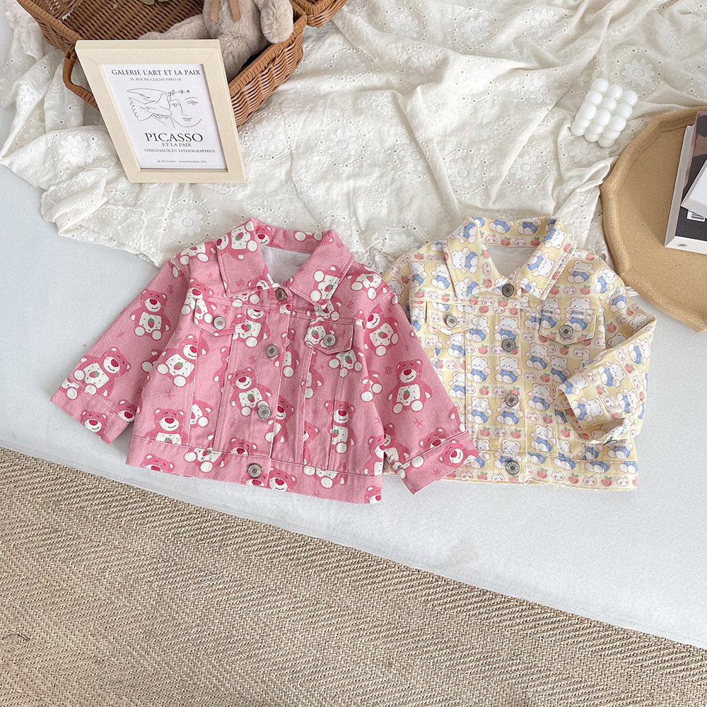 Kaichen 아동복 아동 코트 2023 가을 새로운 한국어 풀 프린트 재킷 코트 소년 소녀 옷깃 재킷스토어 가기